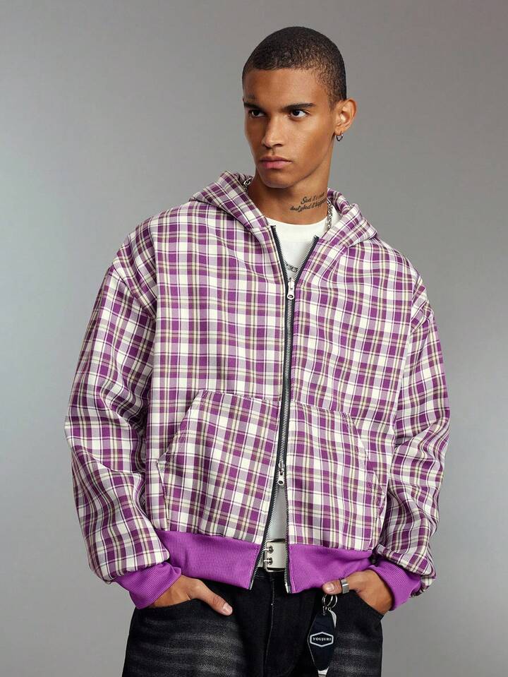 Street Life بلوزة رجالية مربعة الأنماط، مبطنة بطبقة حرارية سميكة