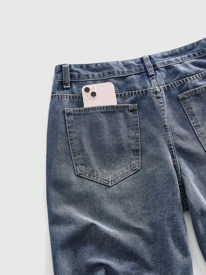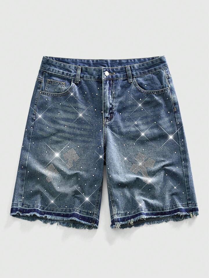 Street Life شورتات جينز كاجوال متعددة الاستخدامات للرجال مع نمط صليب مرصع بالراين وحافة مبهتة