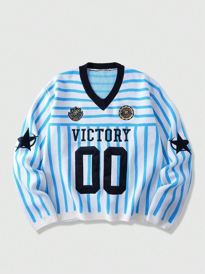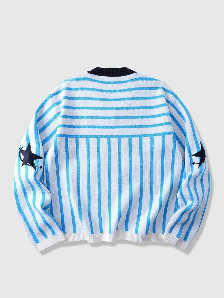 Street Life كنزة صوفية محبوكة بنقشة مطرزة، قياس فضفاض