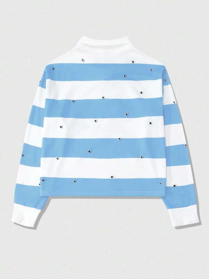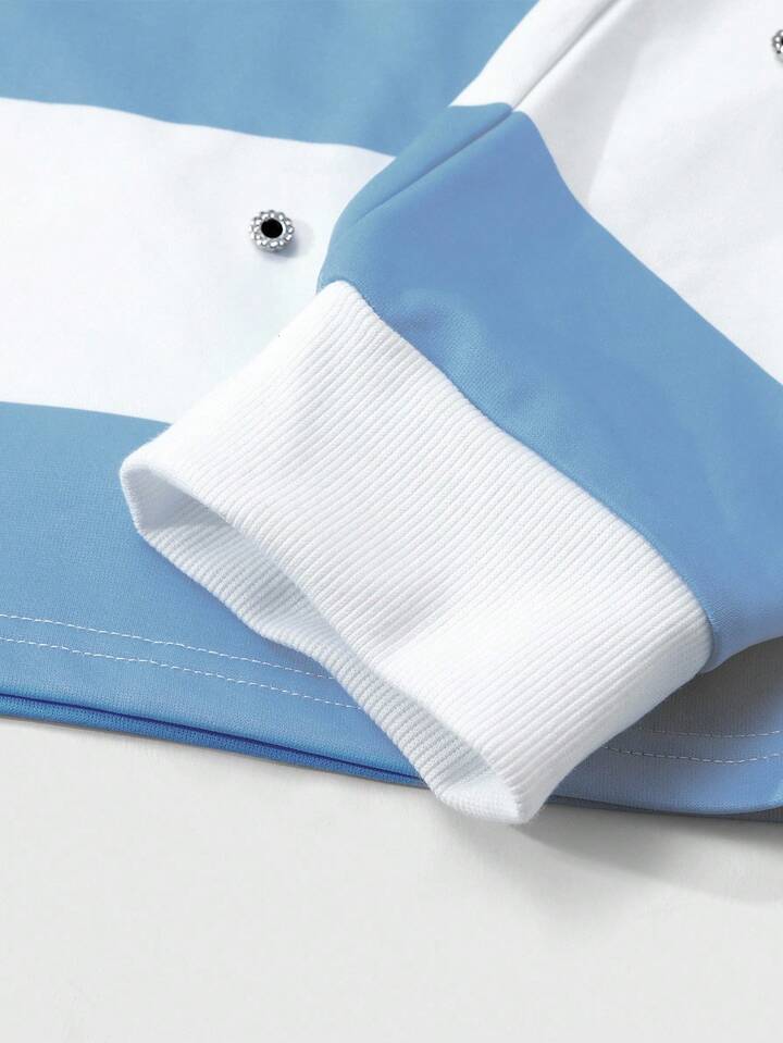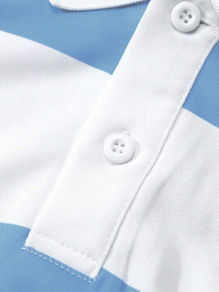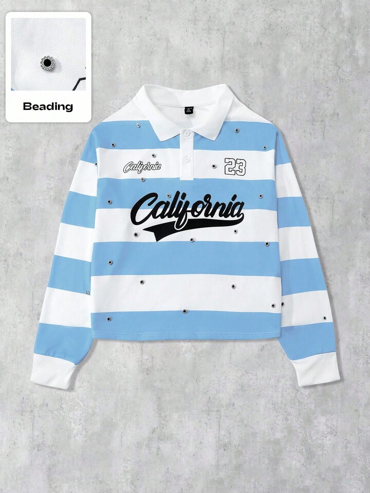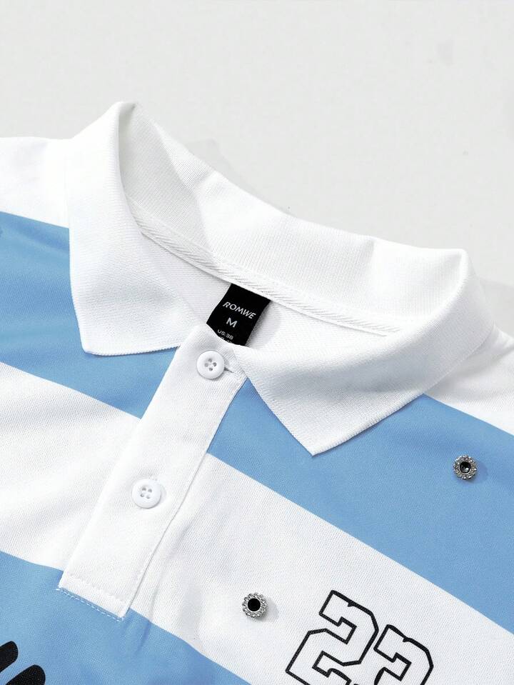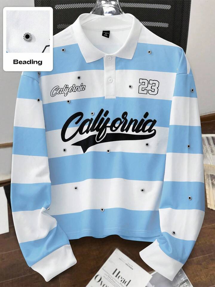 Street Life قميص بولو كاجوال للرجال مزين بخطوط وطباعة أرقام وخرز، مناسب للربيع والخريف