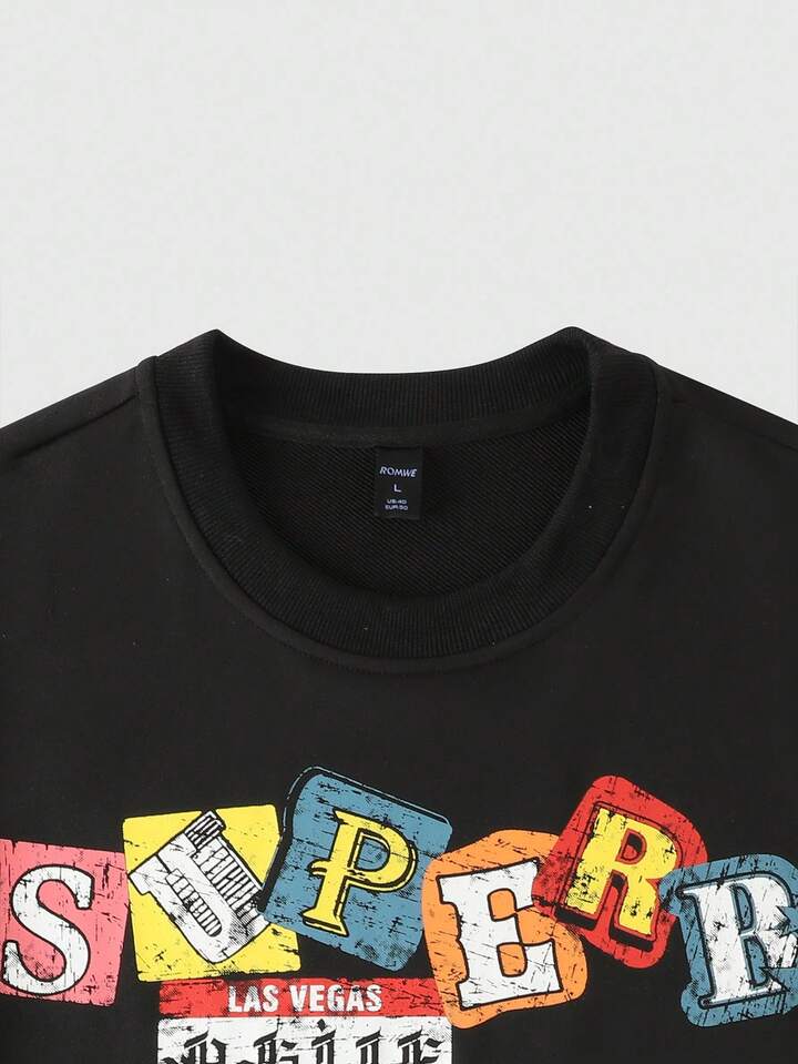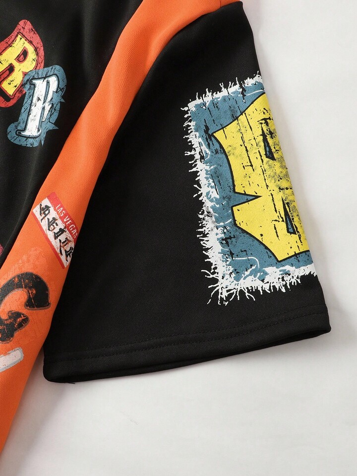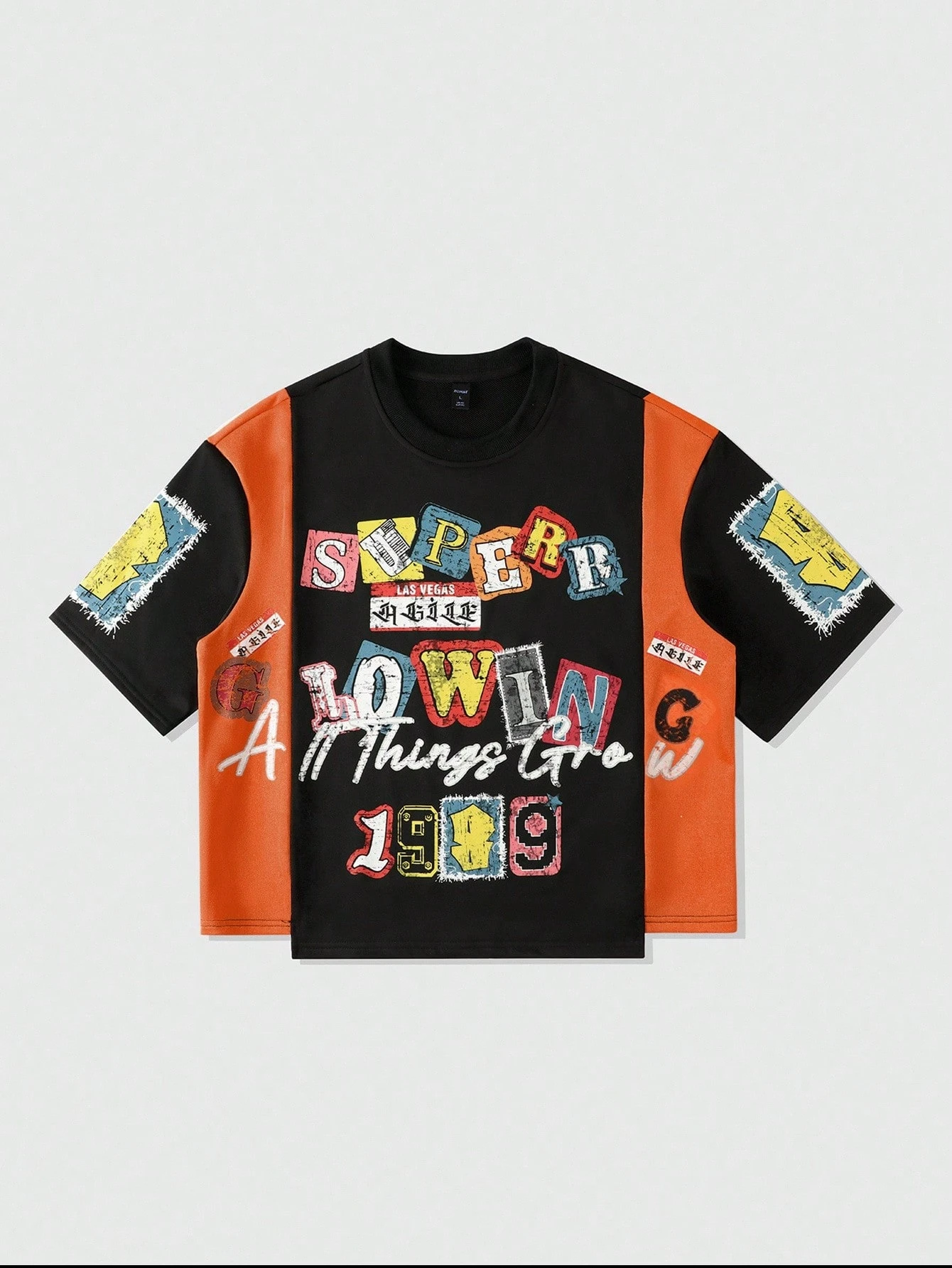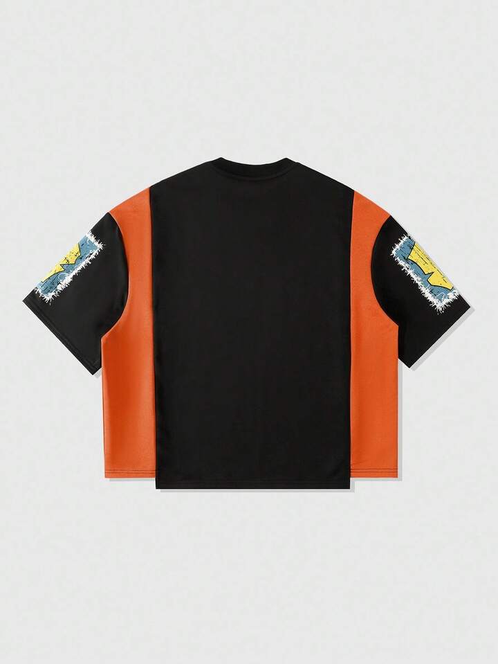Street Life تي شيرت رجالي بطبعات مرقعة، قصير فضفاض بطراز شارع رجعي