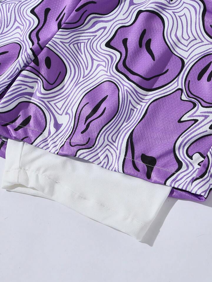 Street Life شورت مطبوع للرجال للاستخدام اليومي في الربيع والصيف ، مدرسي ، 2 في 1