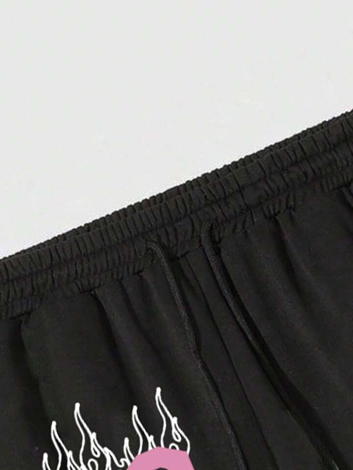 Street Life بنطلون رياضي رجالي بلون متباين تباين طباعة مقسمة، مناسب للربيع والصيف
