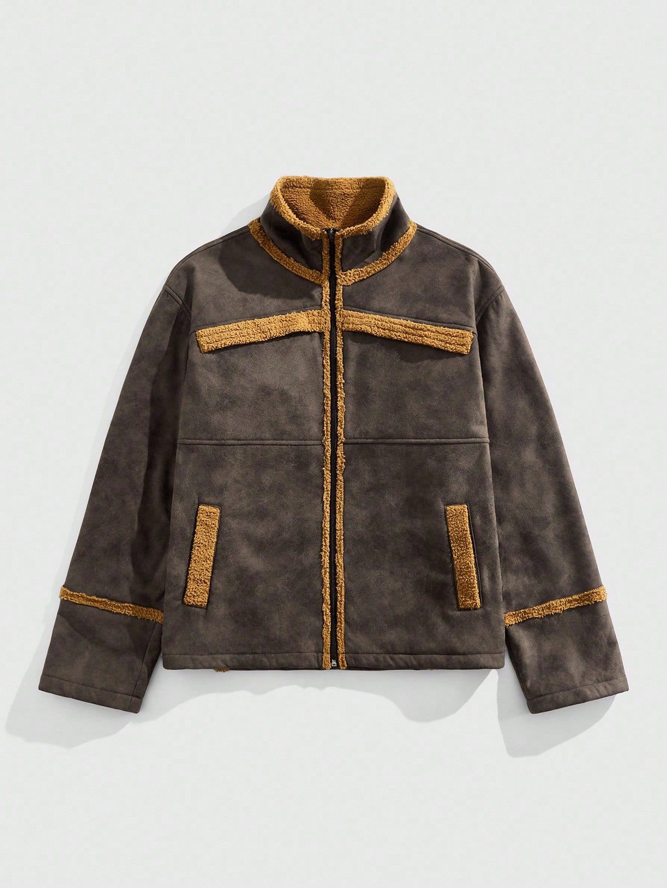 Street Life معطف كاجوال بسحاب وياقة رجالي كلاسيكي، خريف
