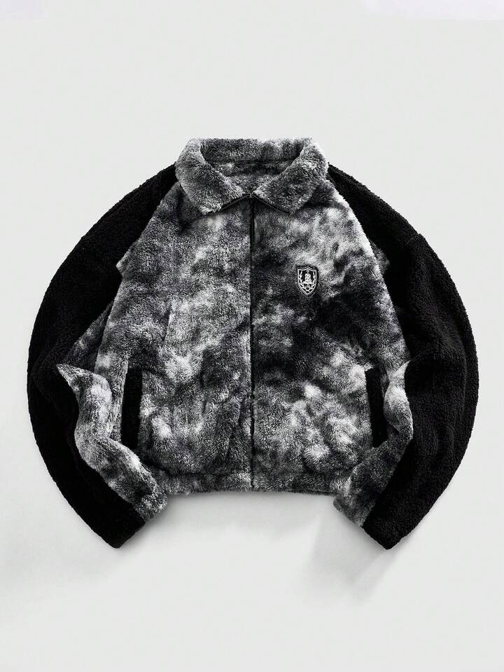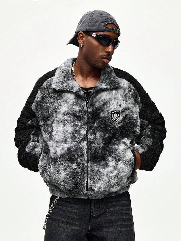 Street Life معطف قابل للعكس من الفليس مطبوع بنقشة الماء والصبغ التعشيقي للرجال
