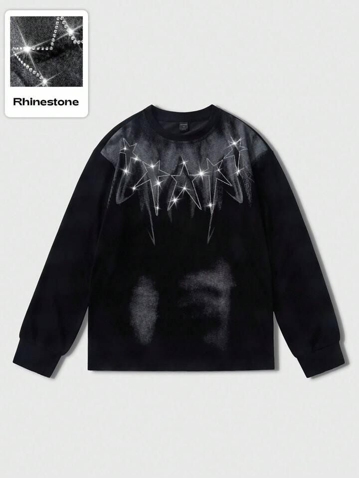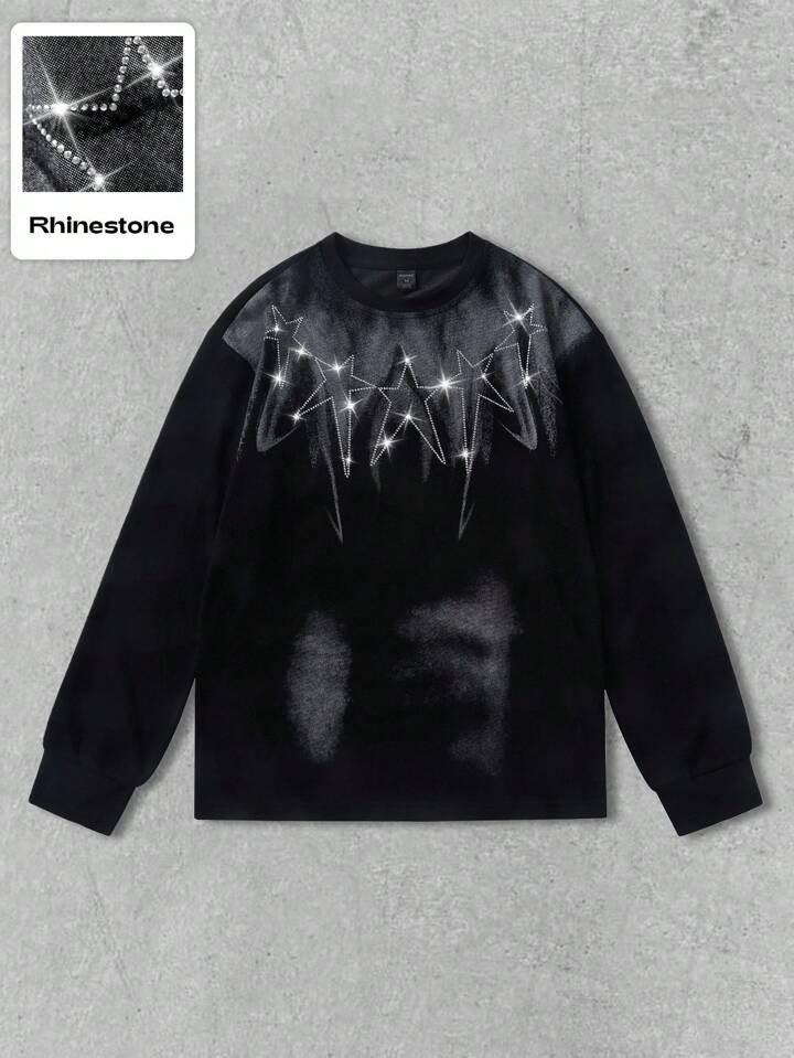 Street Life بلوزة رجالية بطبعات مرصعة بالراين، مناسبة للارتداء اليومي في فصلي الخريف والشتاء