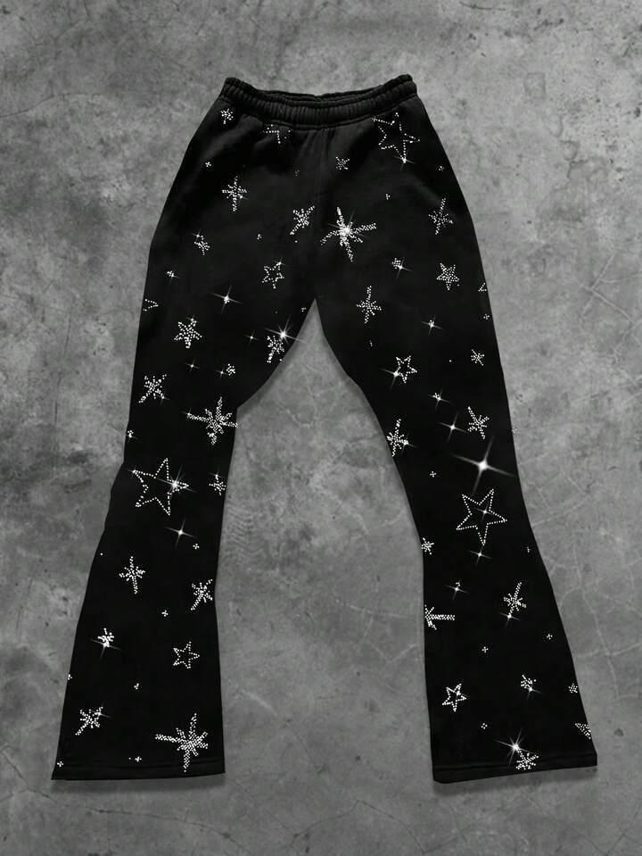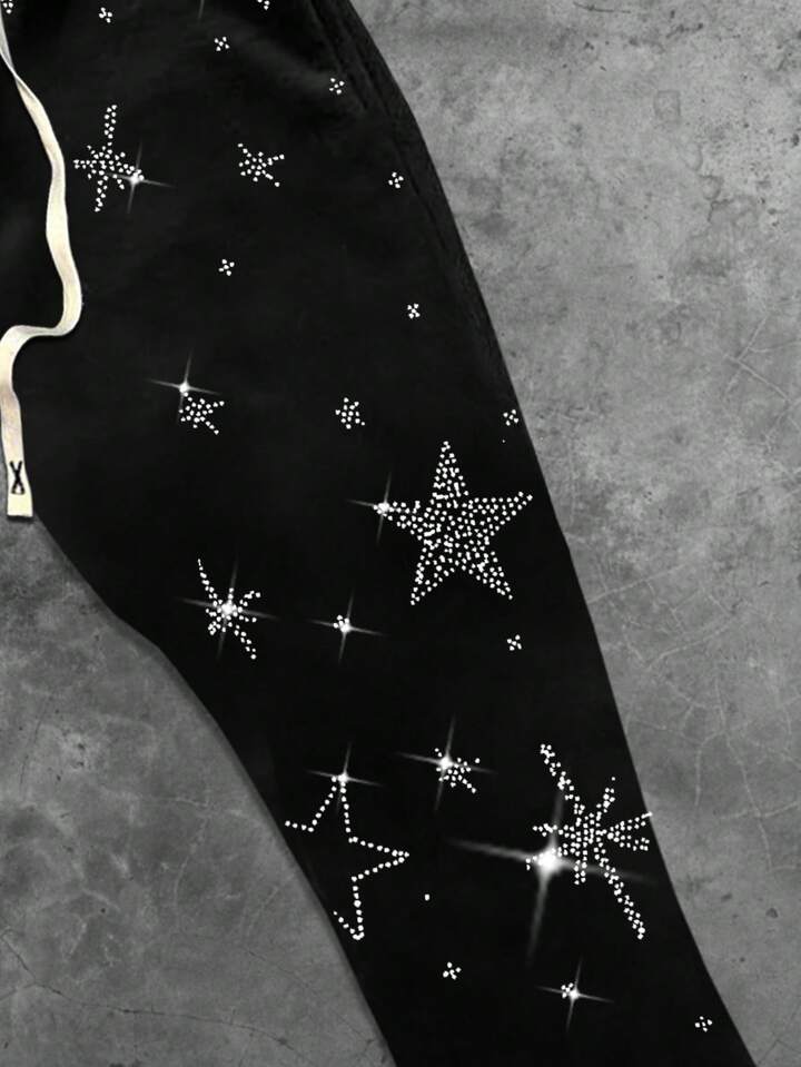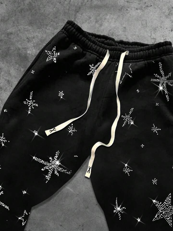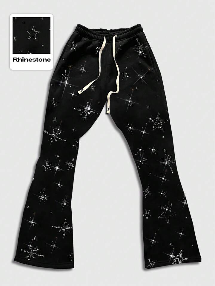 Street Life بنطلون رياضي مرصع بالراين للرجال، بنطال طويل للخريف/الشتاء