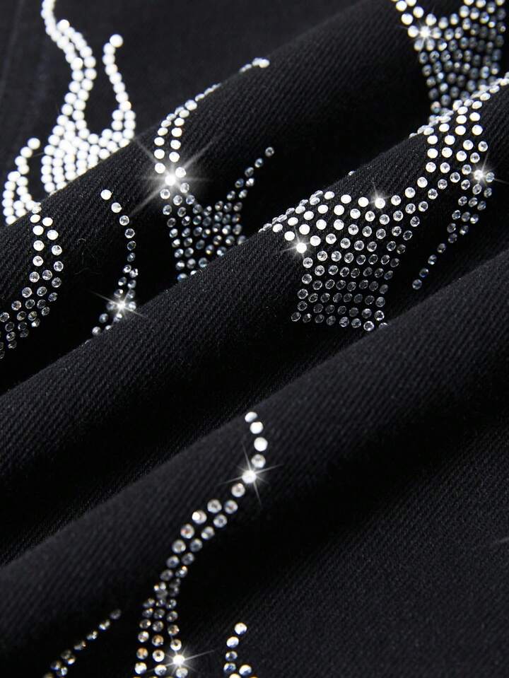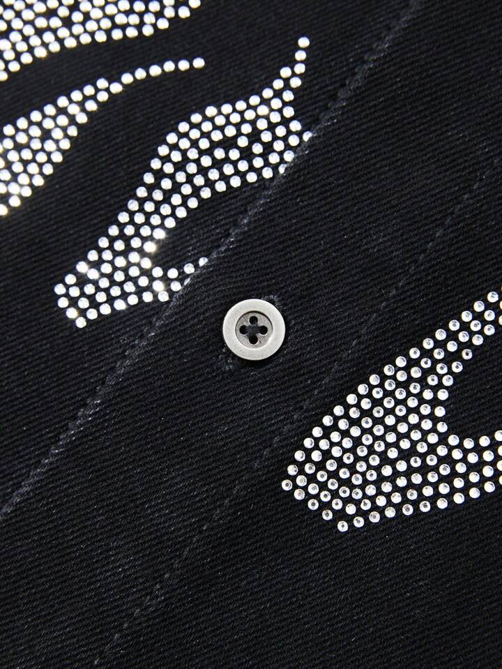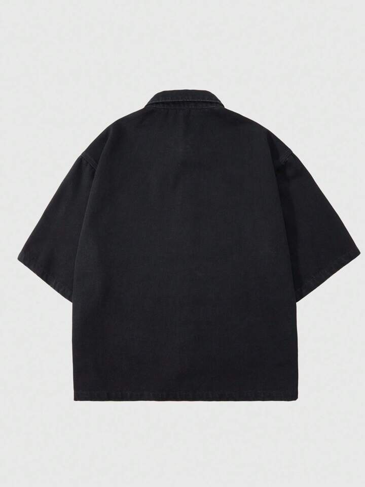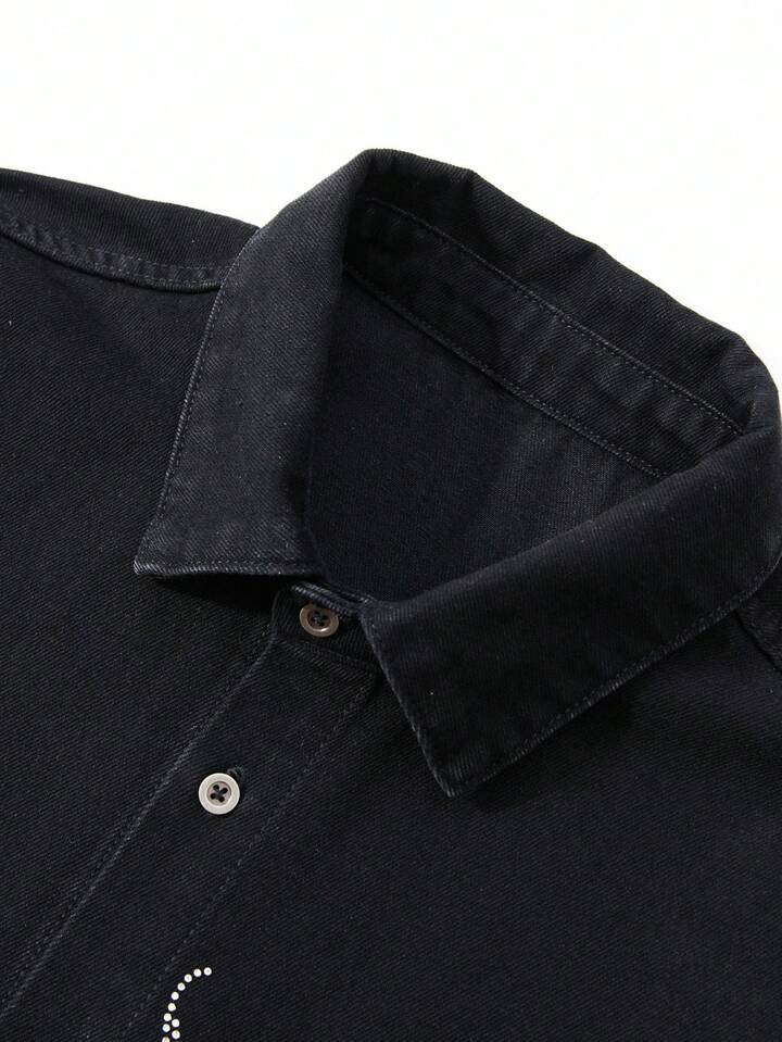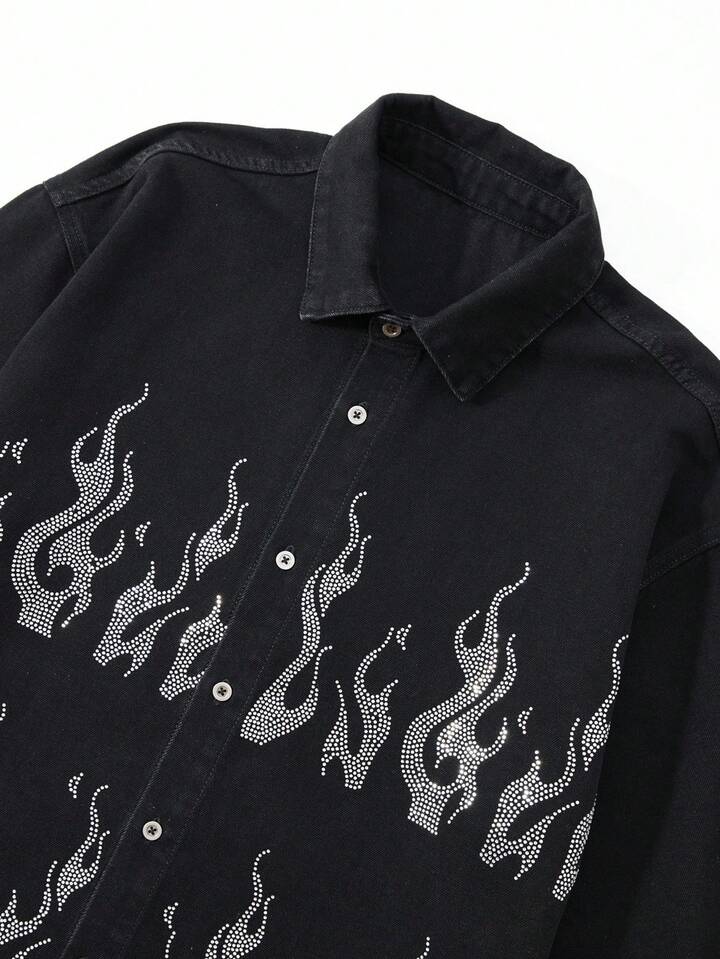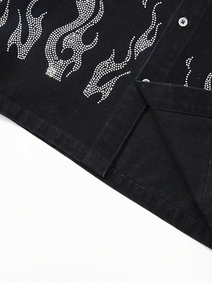 Street Life قميص جينز فضفاض أحادي الصدر بأكمام قصيرة مطبوع بنقوش الألماس واللهب للرجال