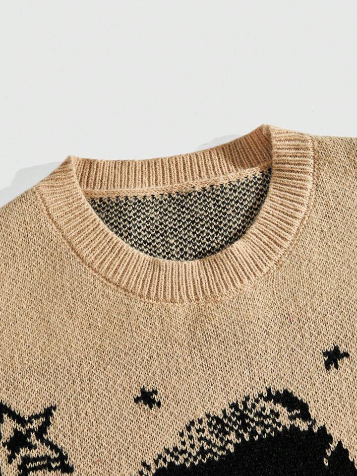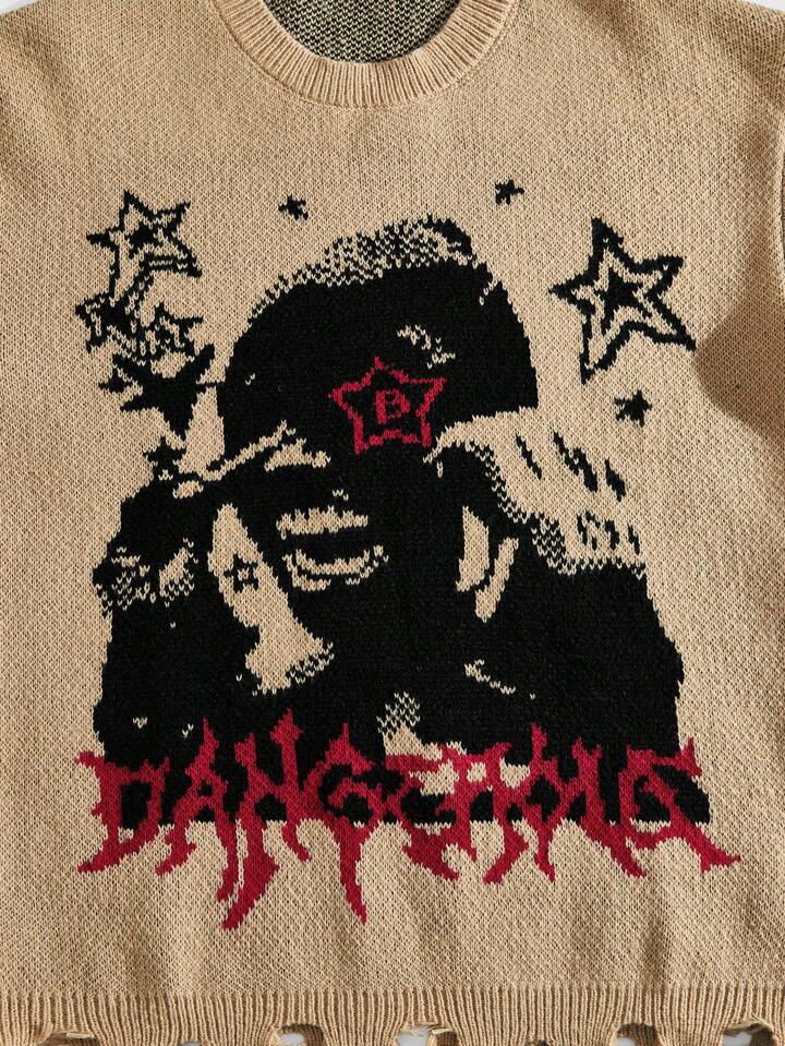 Street Life كنزة صوفية صوفية مطبوعة بنجمة ذات رقبة دائرية مهترئة للرجال