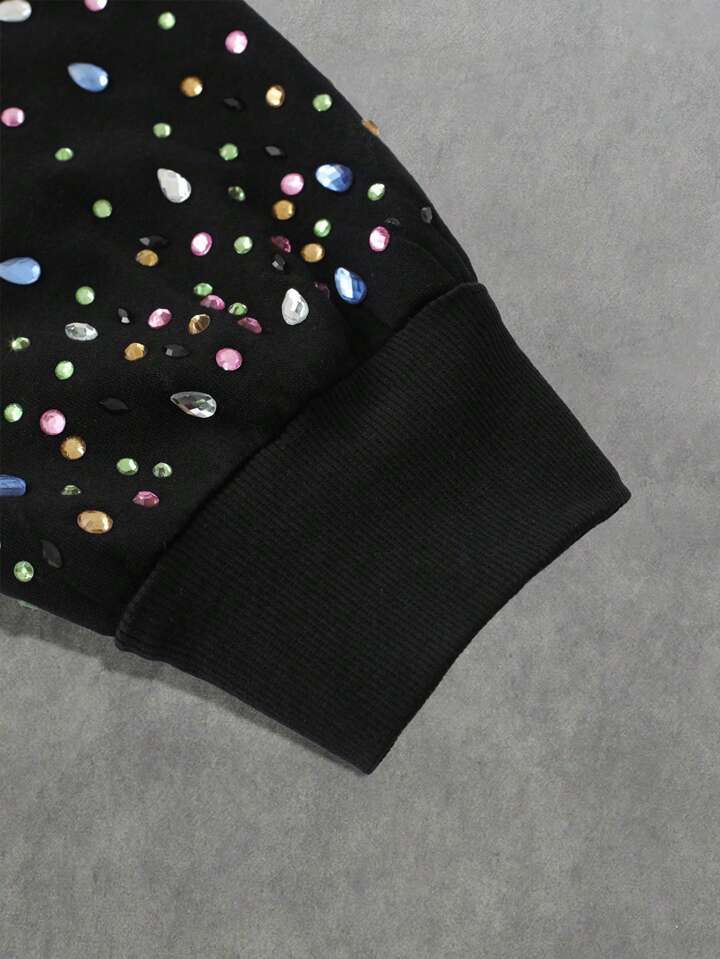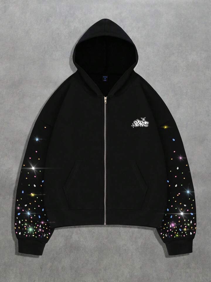 Street Life بلوزة هوديArجواك ذات سحاب مرصعة بالترتر والألماس للرجال