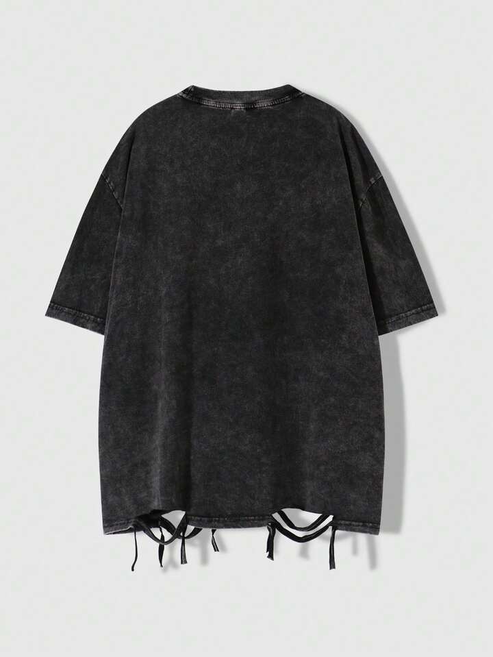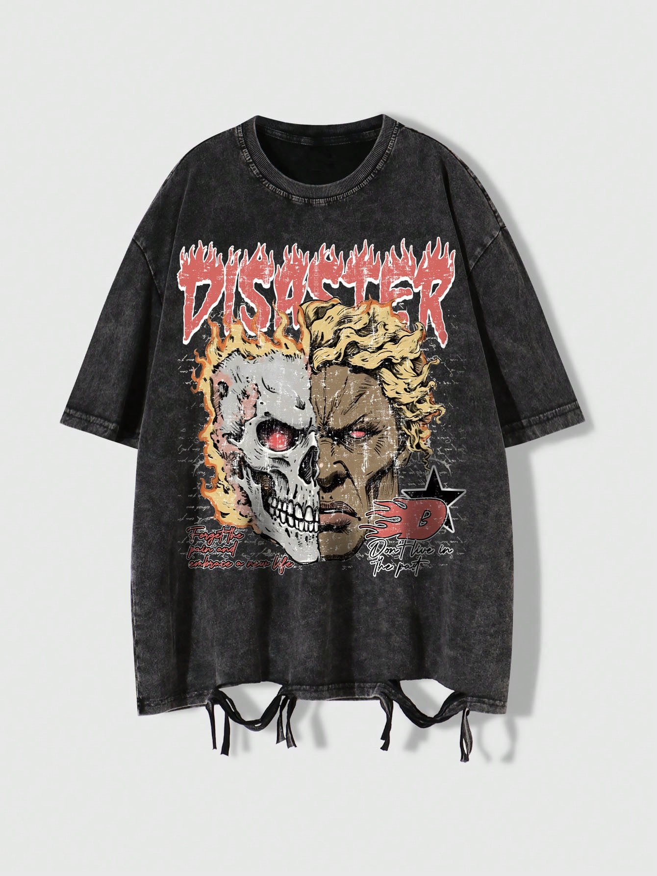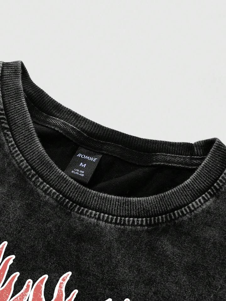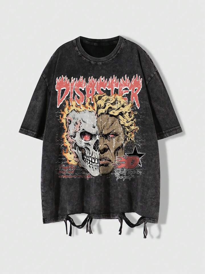 Street Life تي شيرت قصير الأكمام للرجال مطبوع بطبعة جمجمة متهالكة واللهب