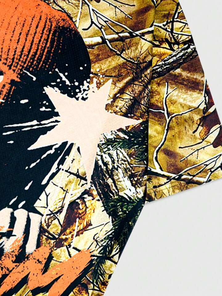 Street Life تي شيرت تي بأكمام قصيرة للرجال مطبوع عليه نجمة خماسية وشعار ، مناسب للربيع والصيف