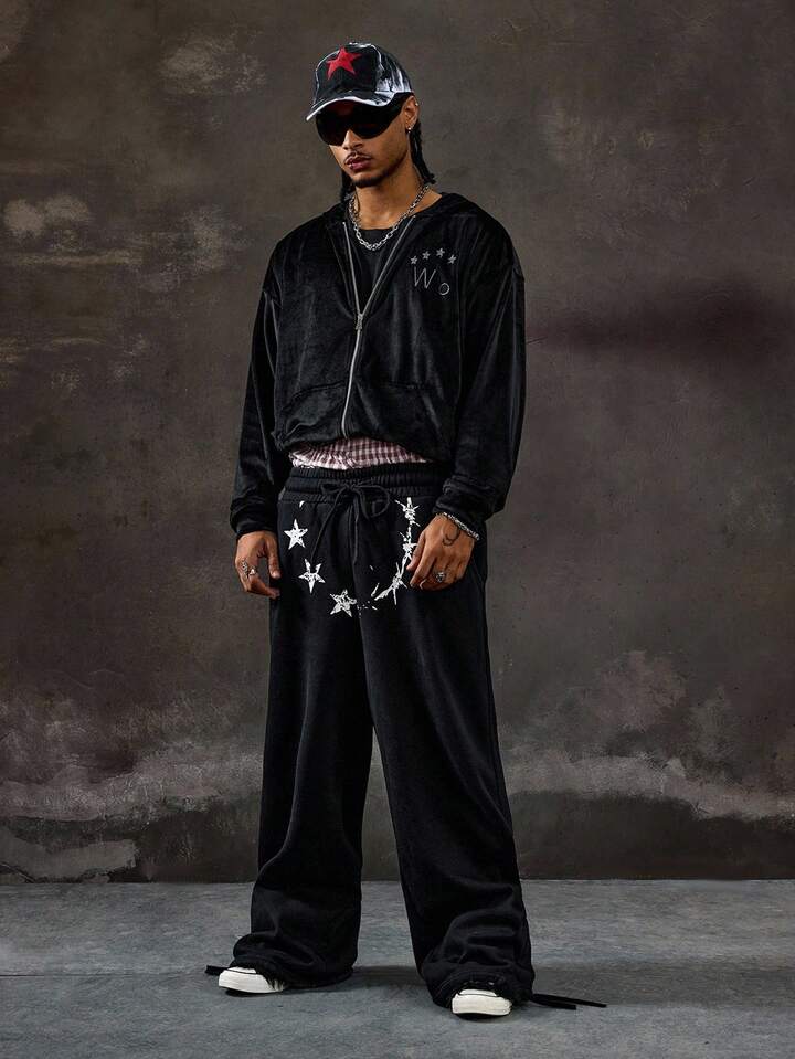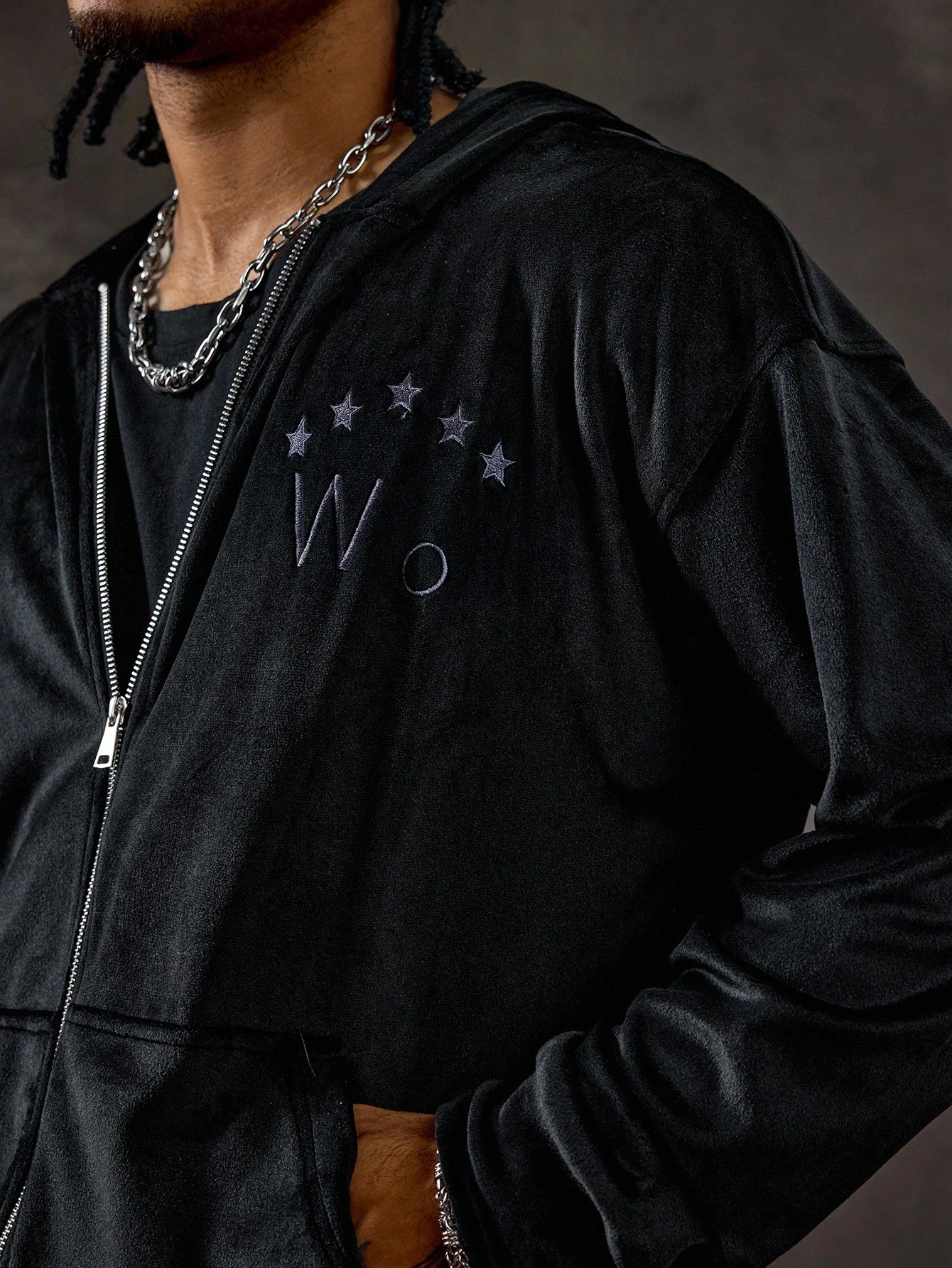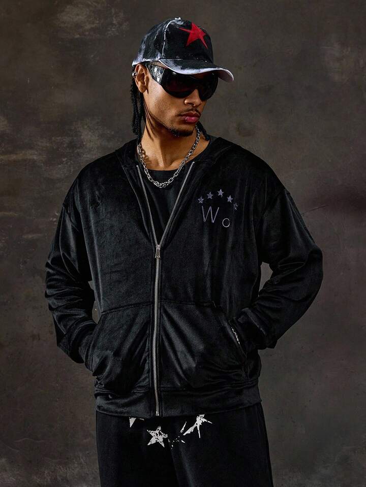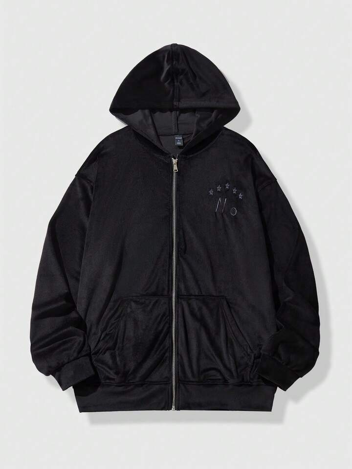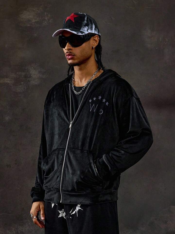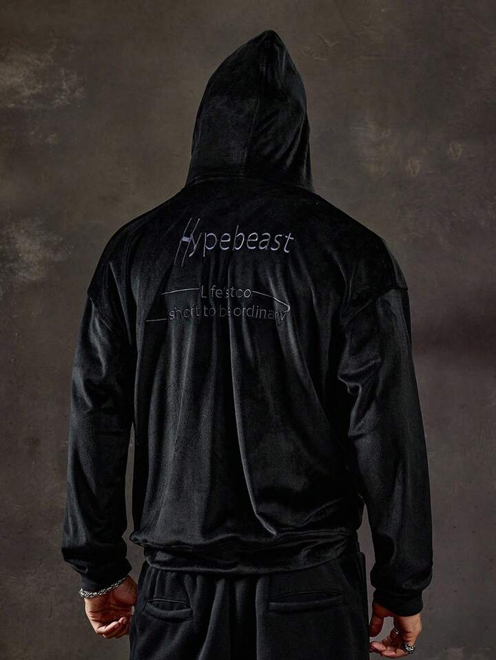 Street Life بلوزة هودي بأكمام طويلة مطرزة بسيطة للرجال