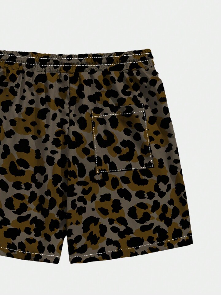 Street Life السراويل القصيرة الصيفية للرجال بخصر رباط مزخرف بطبعة نمر بسيطة، المدرسة