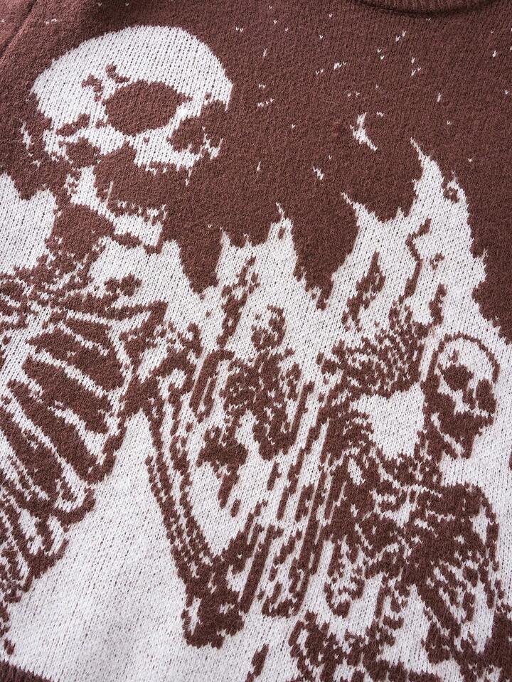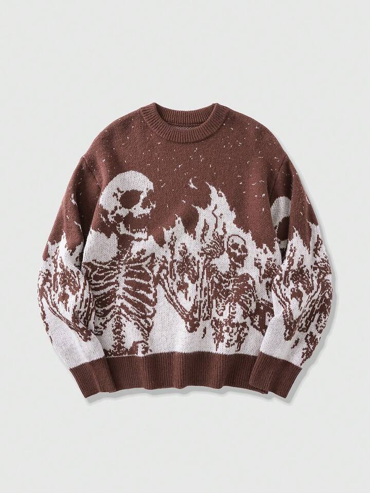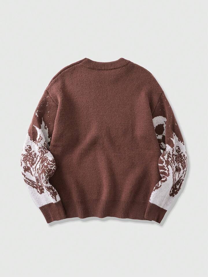 Street Life كنزة صوفية رجالية بياقة طاقم وأكمام طويلة بطبعة جمجمة، ملابس الشارع، خريف/شتاء