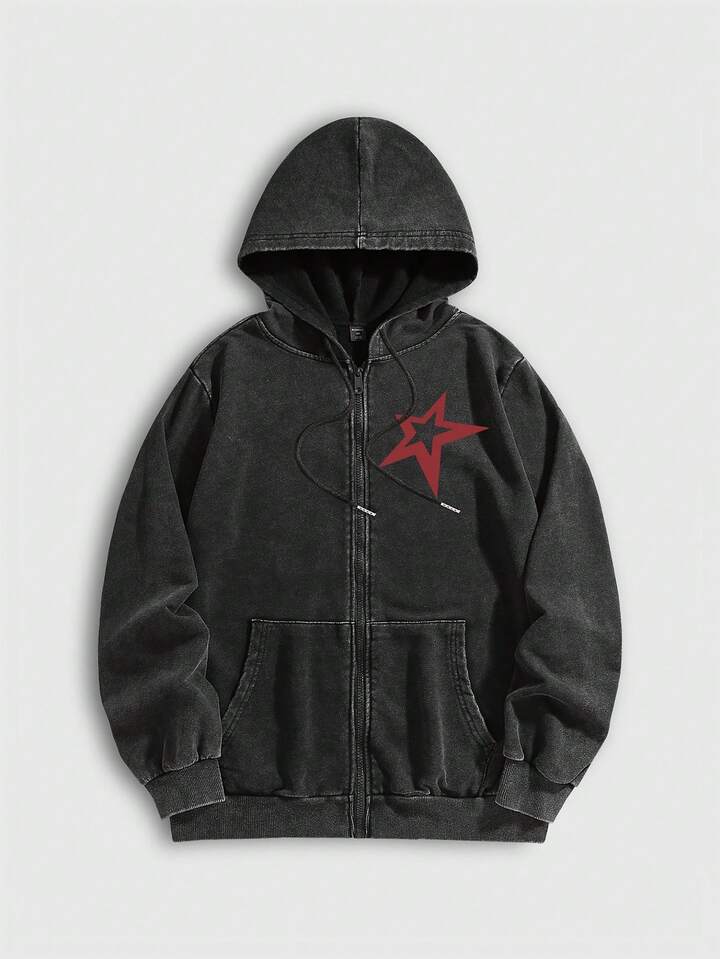 Street Life هودي كاجوال مزود بسوسيرة ذو طبعات شعارات وكواكب للرجال ، للخريف