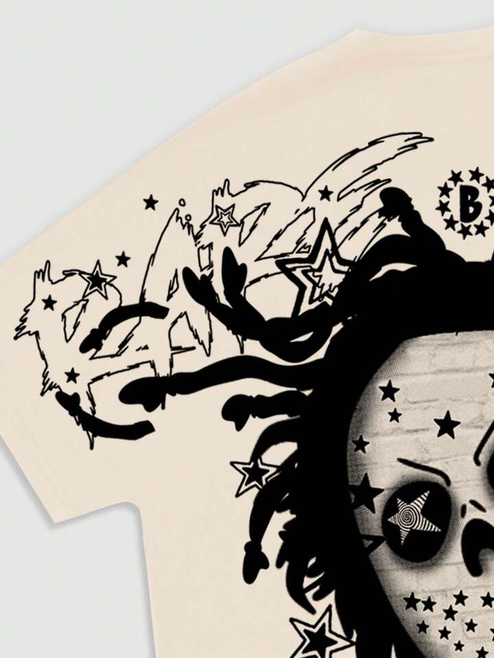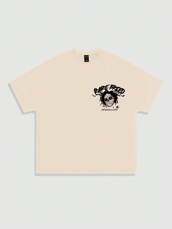 Street Life تي شيرت كاجوال آكمام قصيرة مطبوع عليه شعار جمجمة للرجال ذو ياقة مستديرة