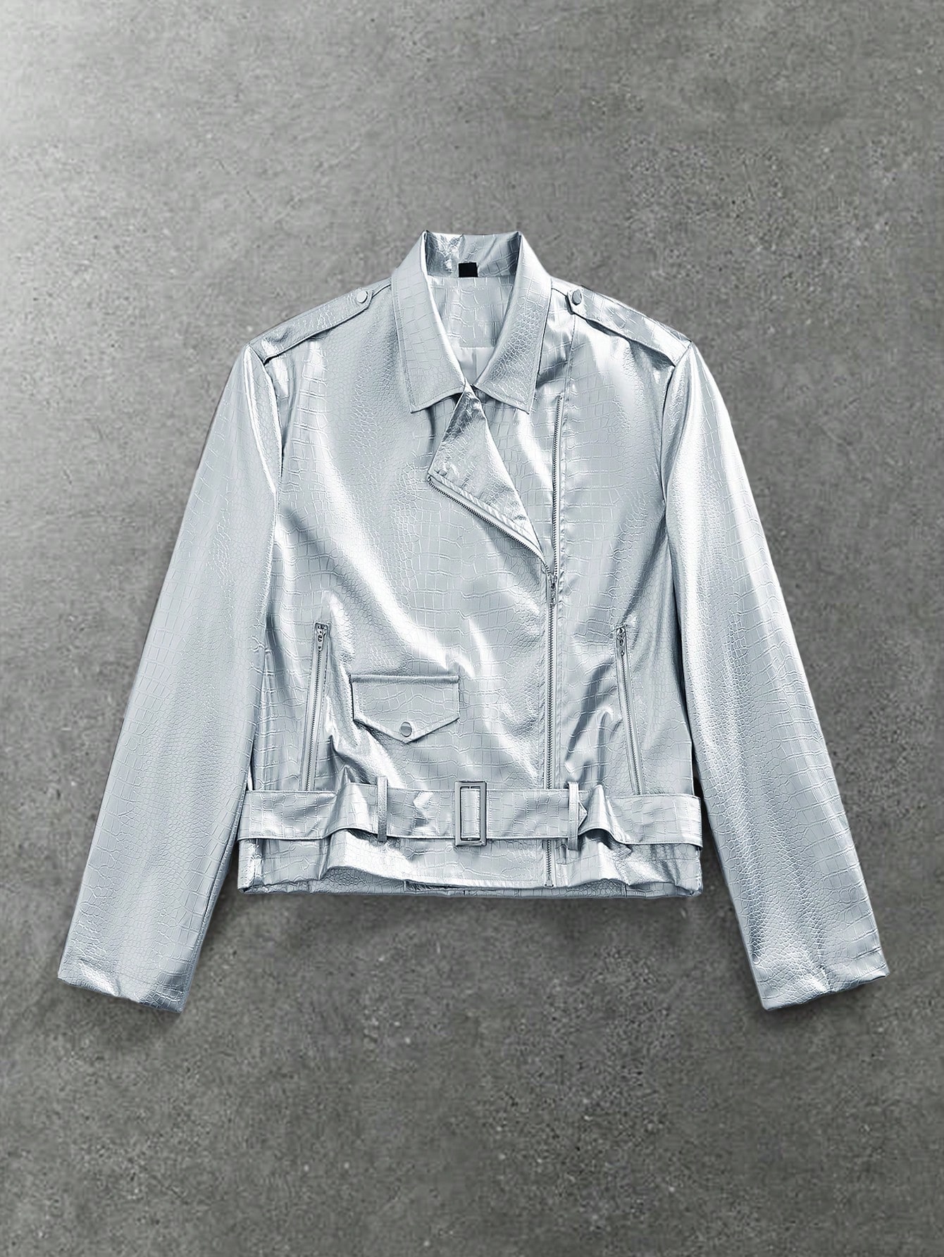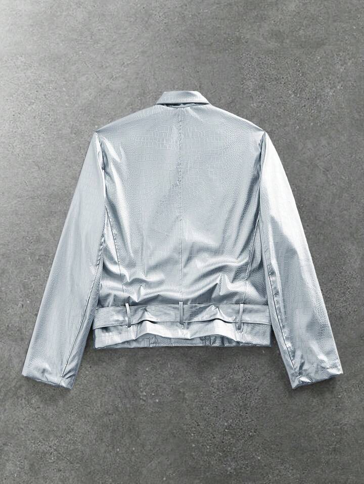 Street Life جاكيت معدنية أكمام طويلة أحادية اللون بتصميم بسيط للاستخدام اليومي للرجال