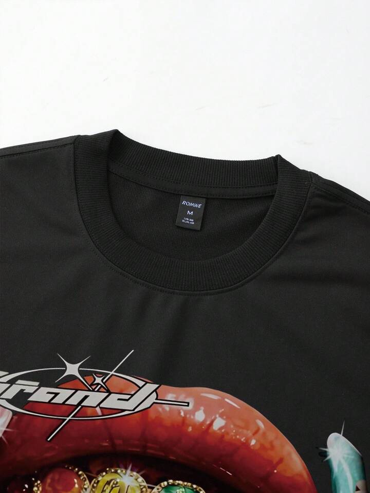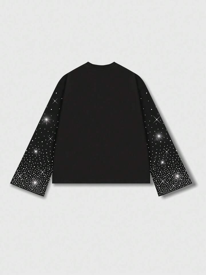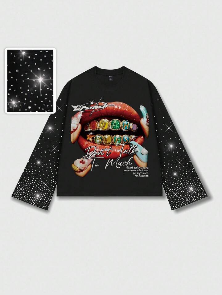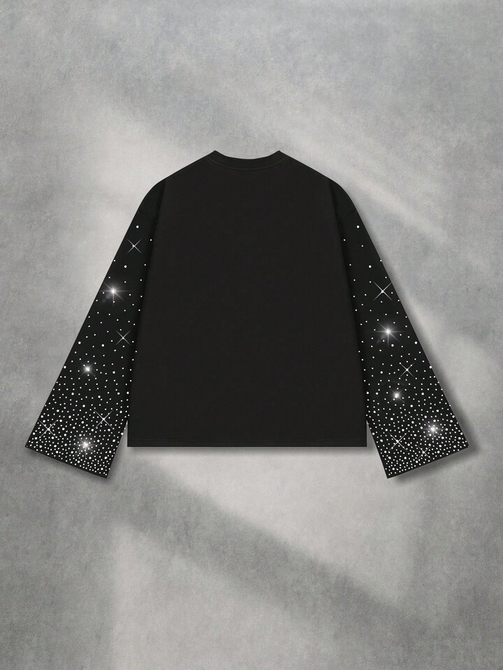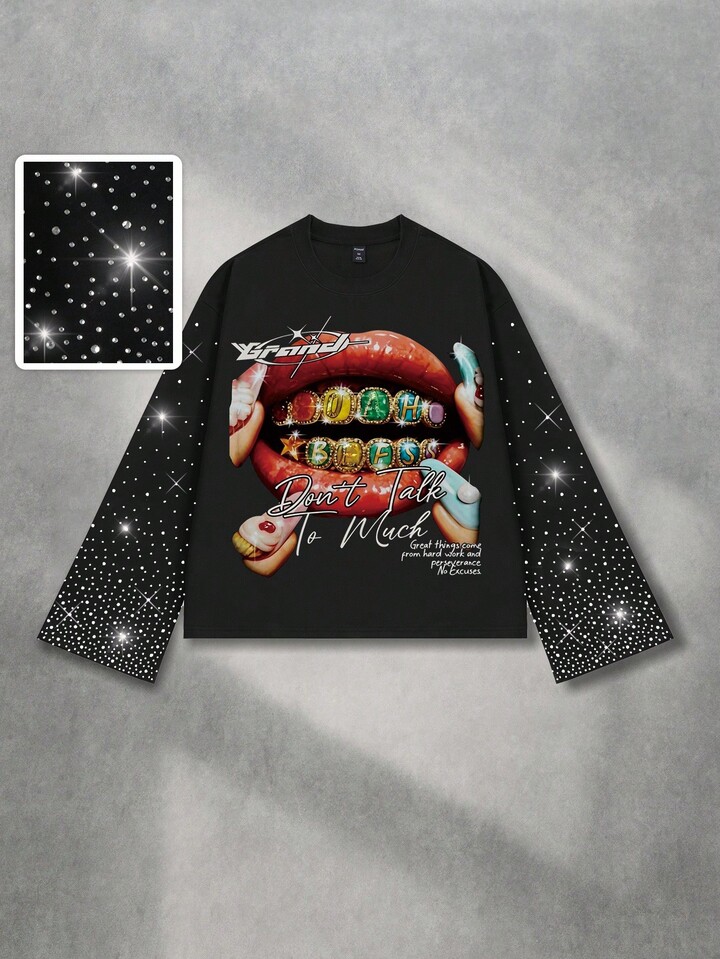 Street Life قميص تي شيرت رجالي بأكمام طويلة مطبوع عليه ألماس لامع وفضفاض