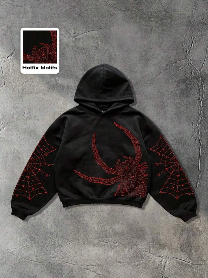 Street Life بلوزة هودي كاجوال للرجال مطبوعة بعنكبوت مرصعة بالماس اللامع
