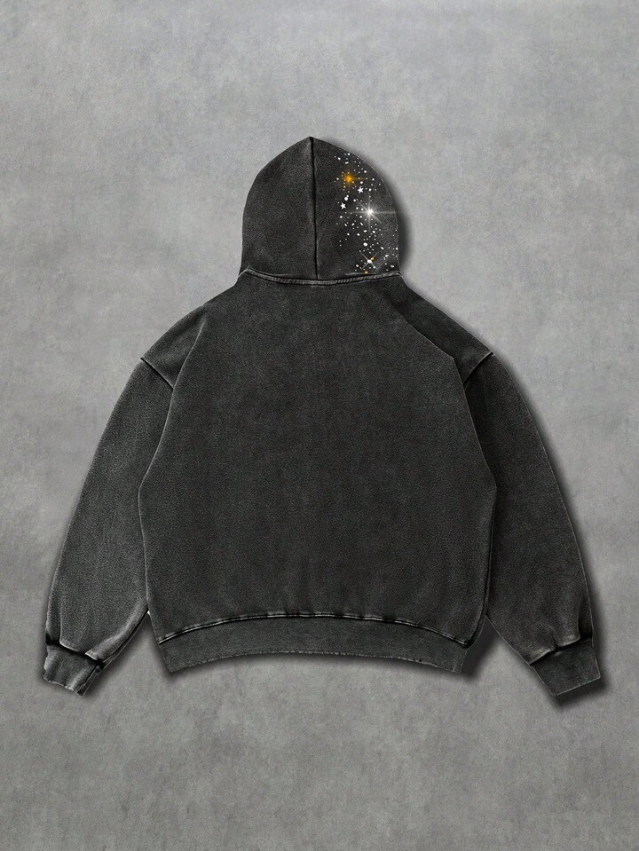 Street Life بلوزة رياضية رجالية مفتوحة مغسولة بالماء مرصعة بالألماس، قصيرة وفضفاضة الطراز
