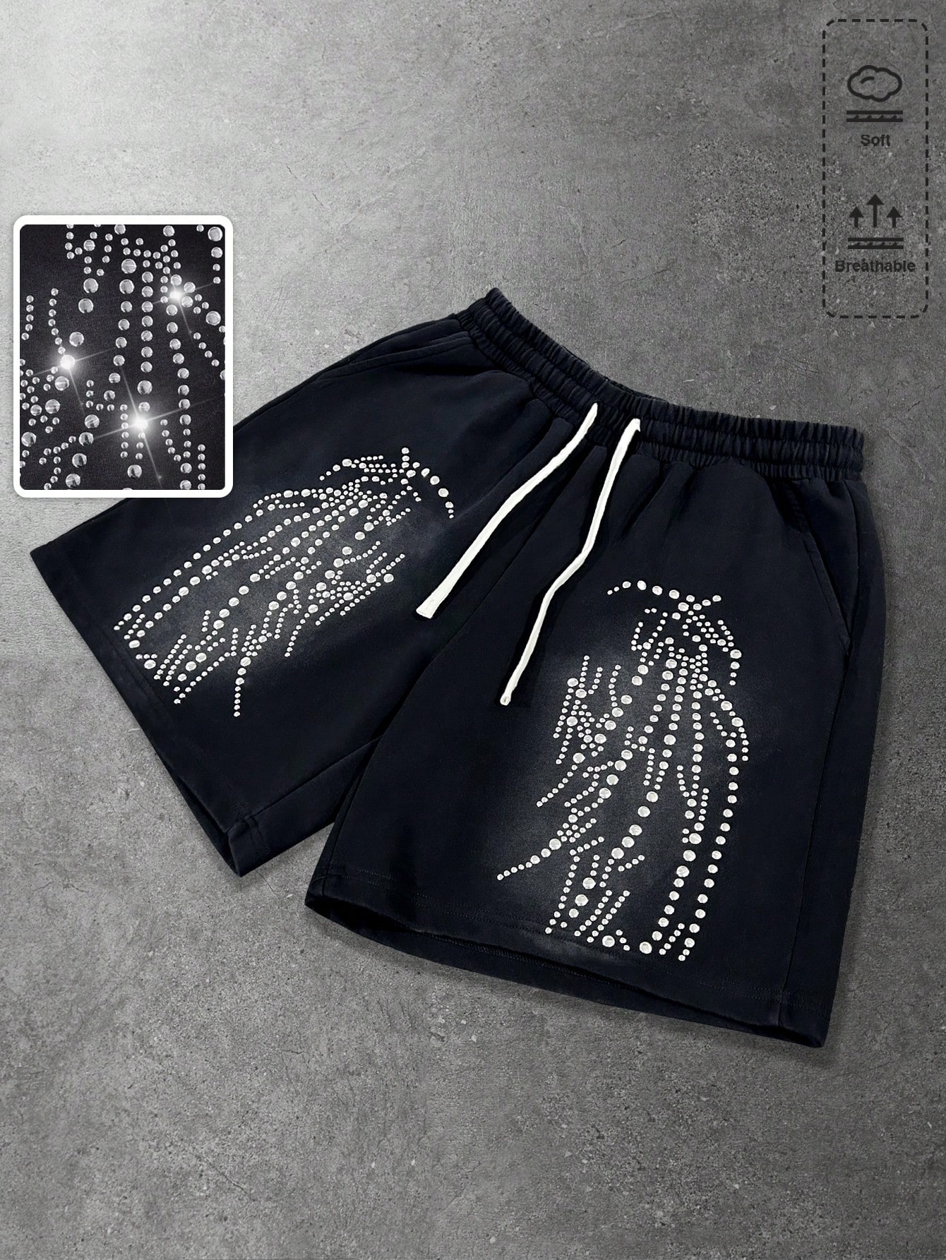 Street Life شورت رجالي مطبوع بنمط الزيبرا مرصع بالراين ستون اللامع