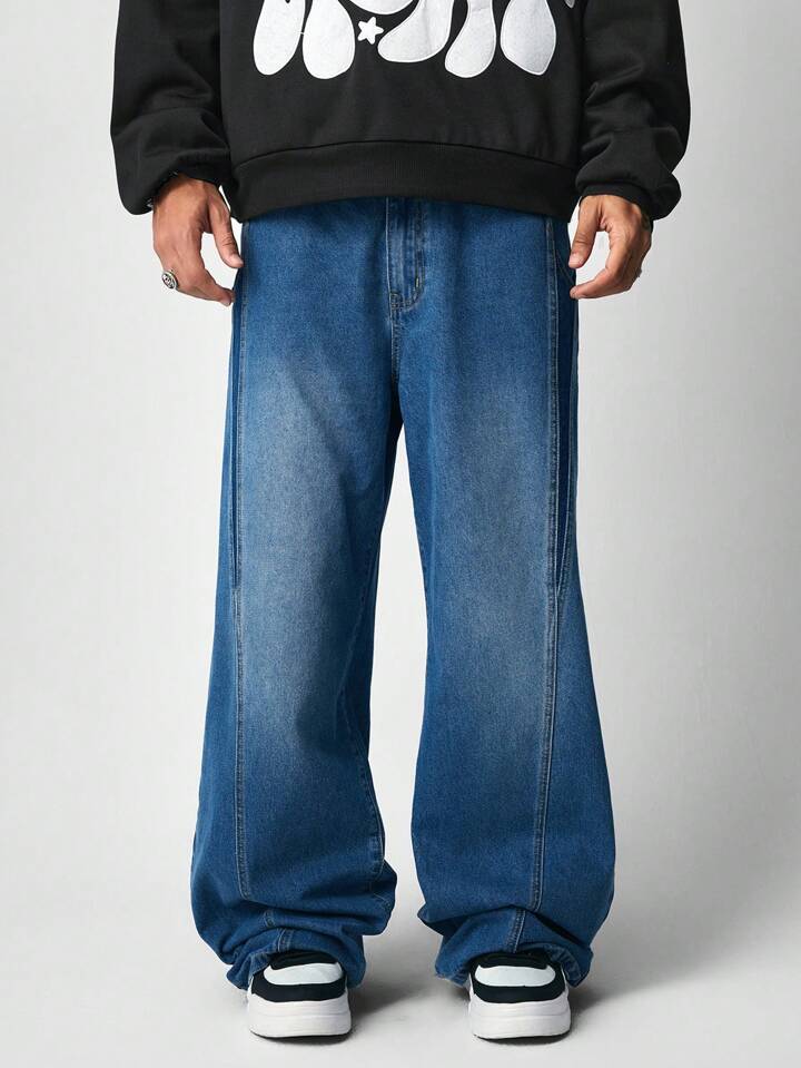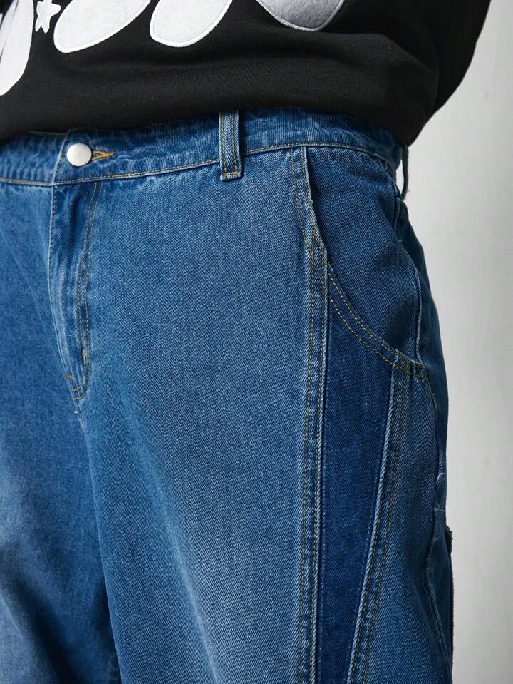 Street Life السراويل الجينز مستقيمة الساق فضفاضة عادية مع جيوب ، متعددة الاستخدامات للرجال