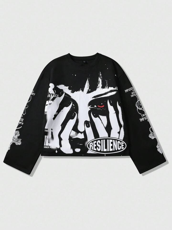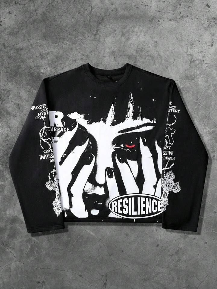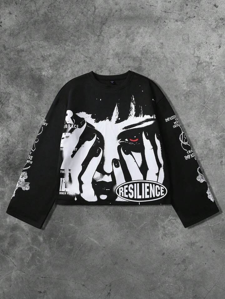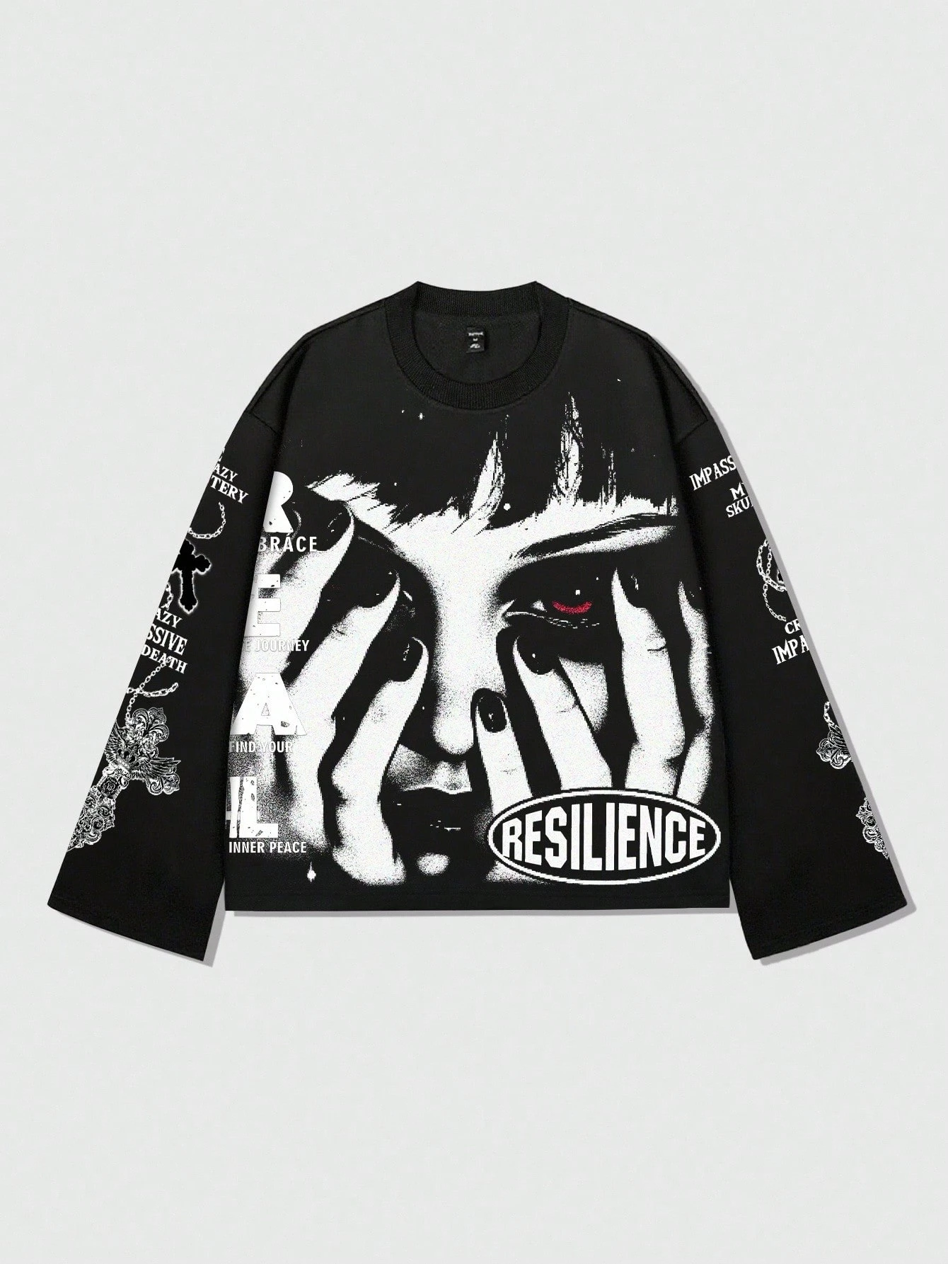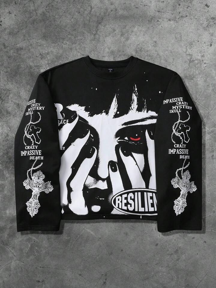 Street Life قميص تي شيرت بأكمام طويلة مع طباعة وجه امرأة جميلة أمريكية قاتمة، طبعة جرافيك إنجليزية، موضة الخريف للرجال