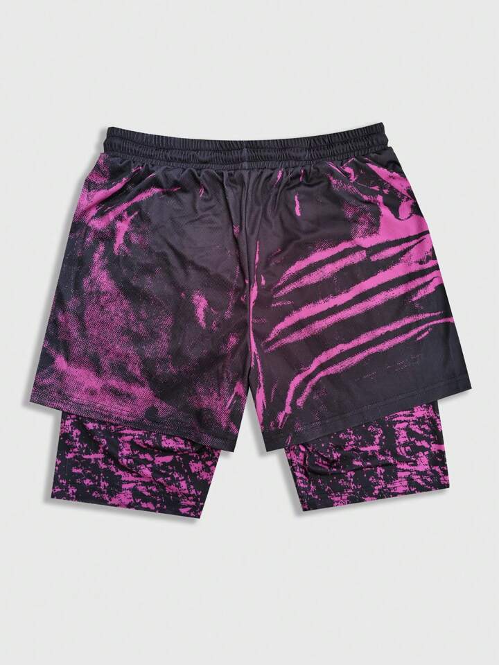 Street Life شورت رجالي ذو طبعة الصبغة المربوط بحبال خصر مزدوج الطبقة أنيق