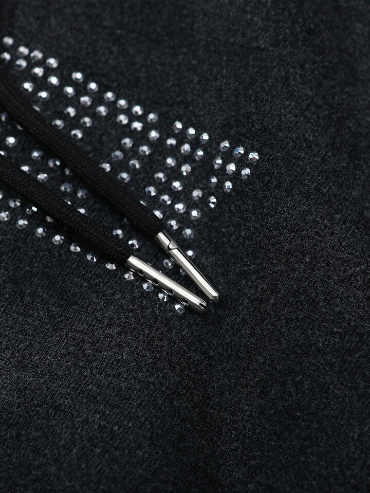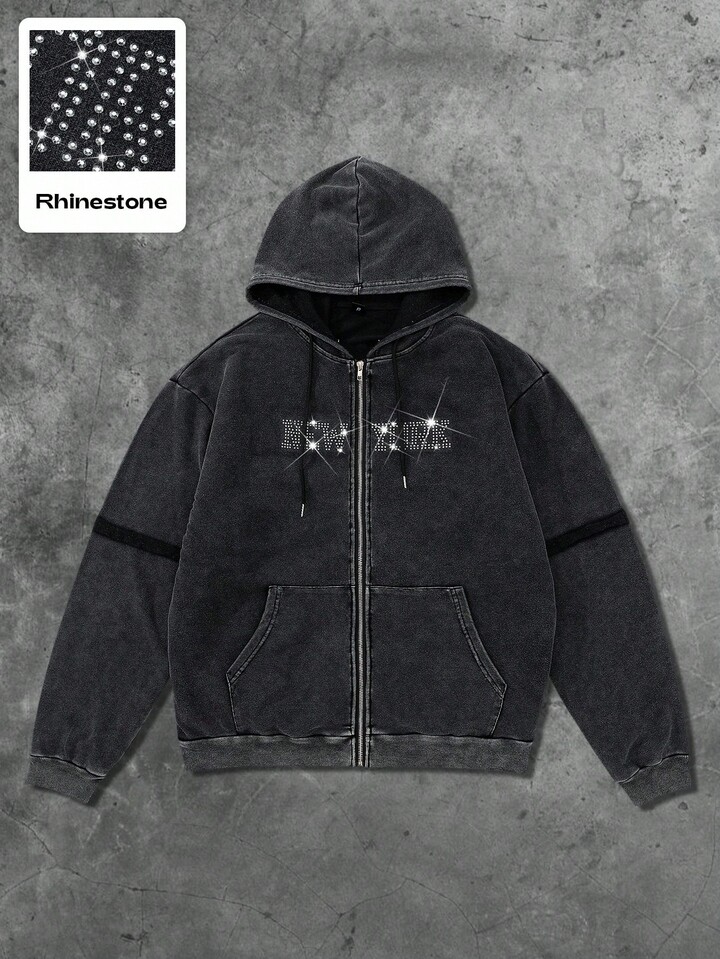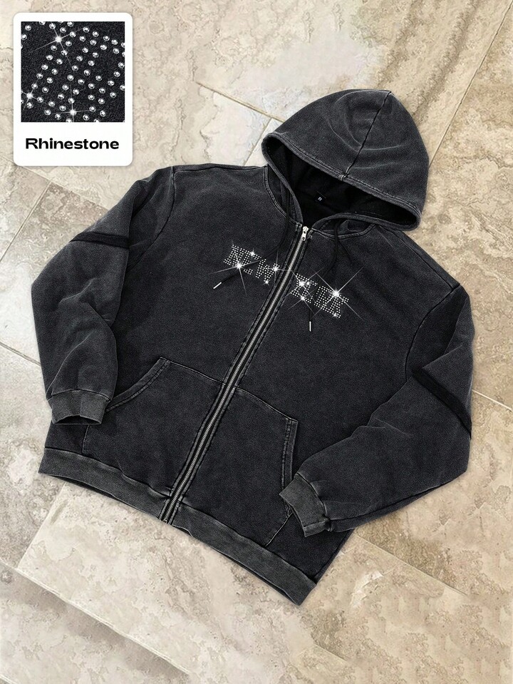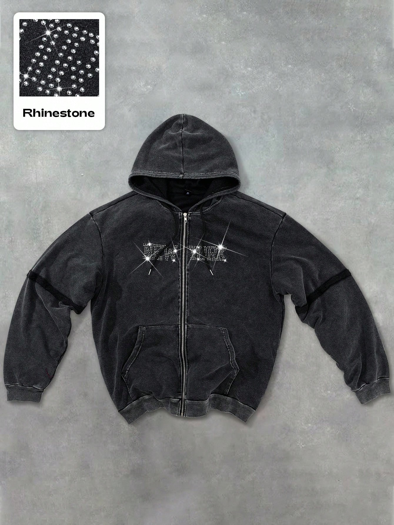 Street Life بلوزة رياضية مقطعة بسحاب مزينة بالراين ذات تصميم أمريكي بطراز الشارع للرجال، خريف