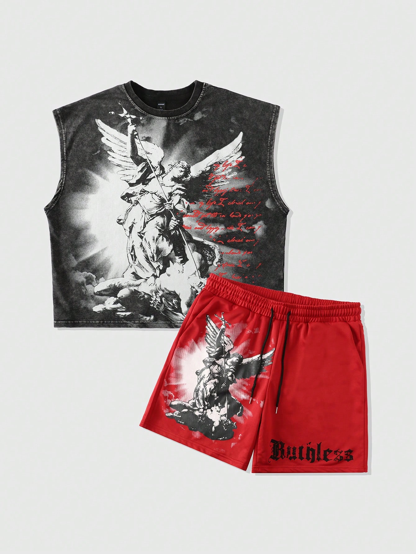 Street Life طقم خزان ملابس علوية مطبوع برسوم عصرية مغسول للرجال