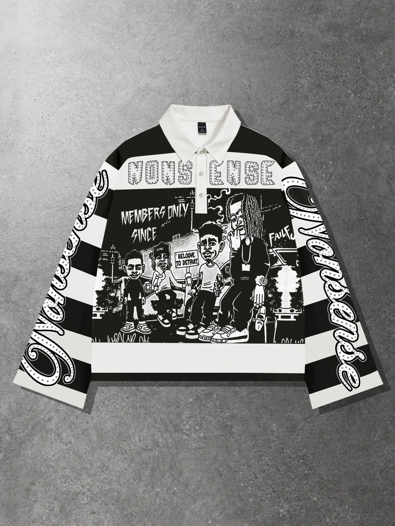 Street Life ملابس علوية تي شيرت كاجوال بياقة مخططة وأكمام طويلة مطبوع