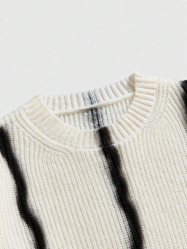 Street Life كنزة صوفية كاجوال طويلة الأكمام ذات رقبة طاقم مخططة للرجال