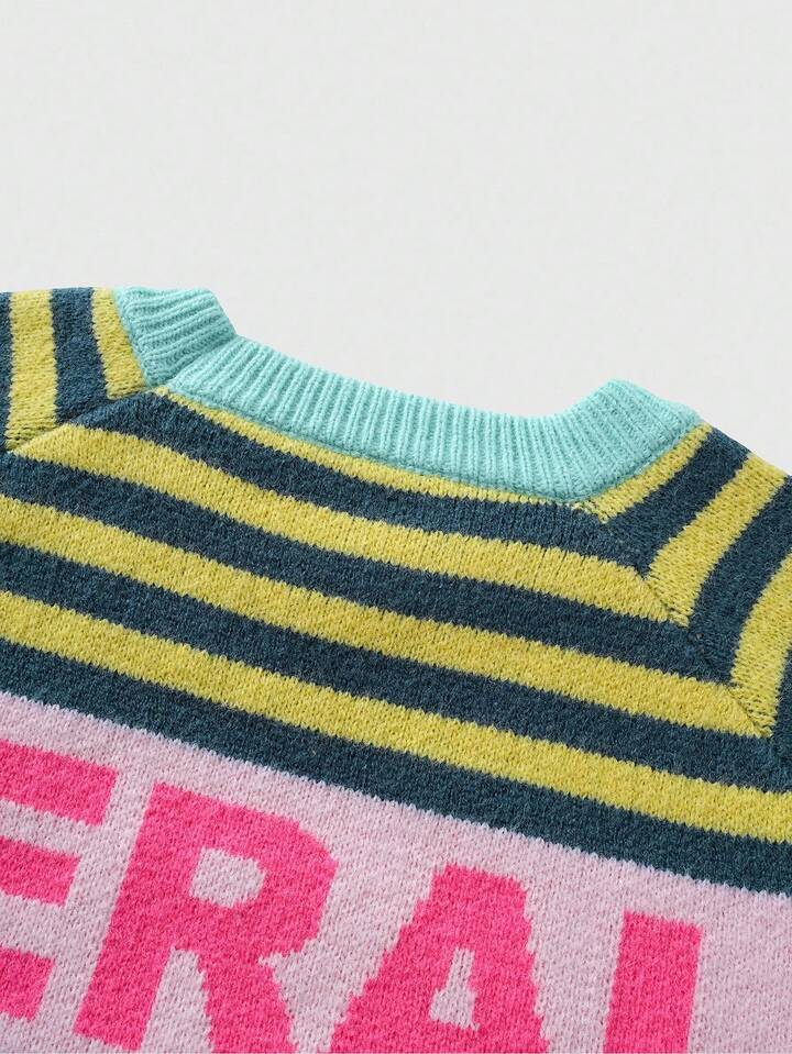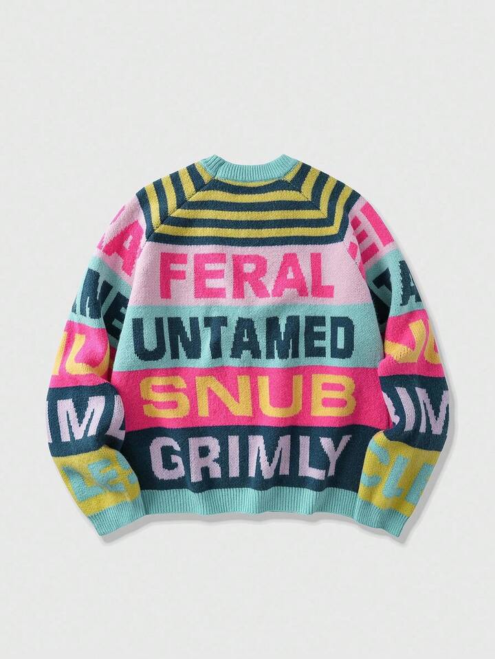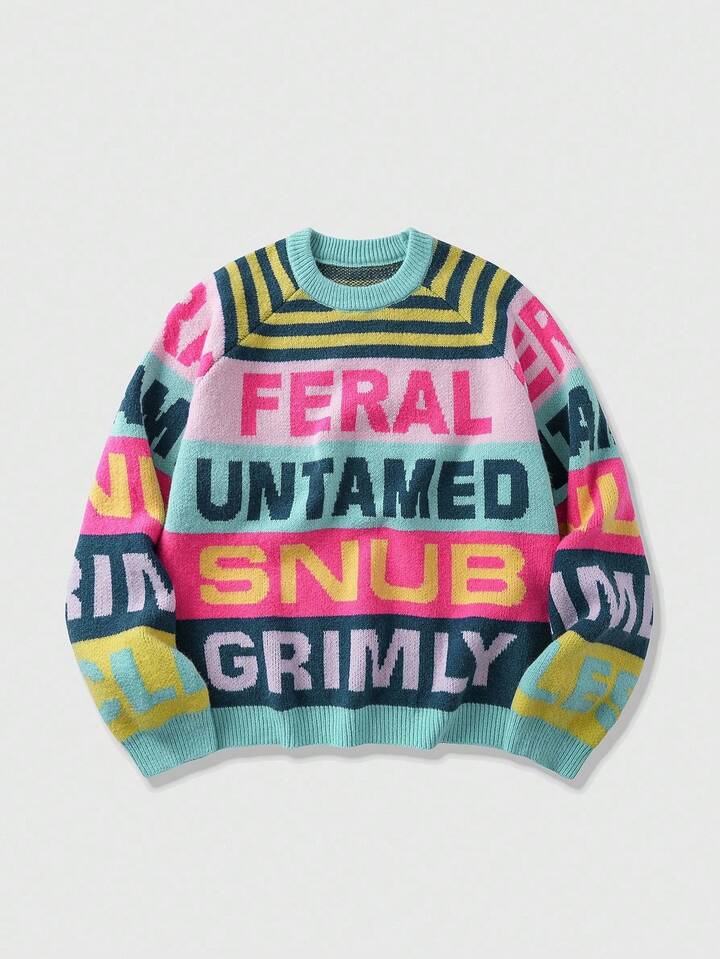 Street Life كنزة صوفية رجالية بياقة طاقم وأكمام طويلة، بنقشة مخططة، للخريف/الشتاء