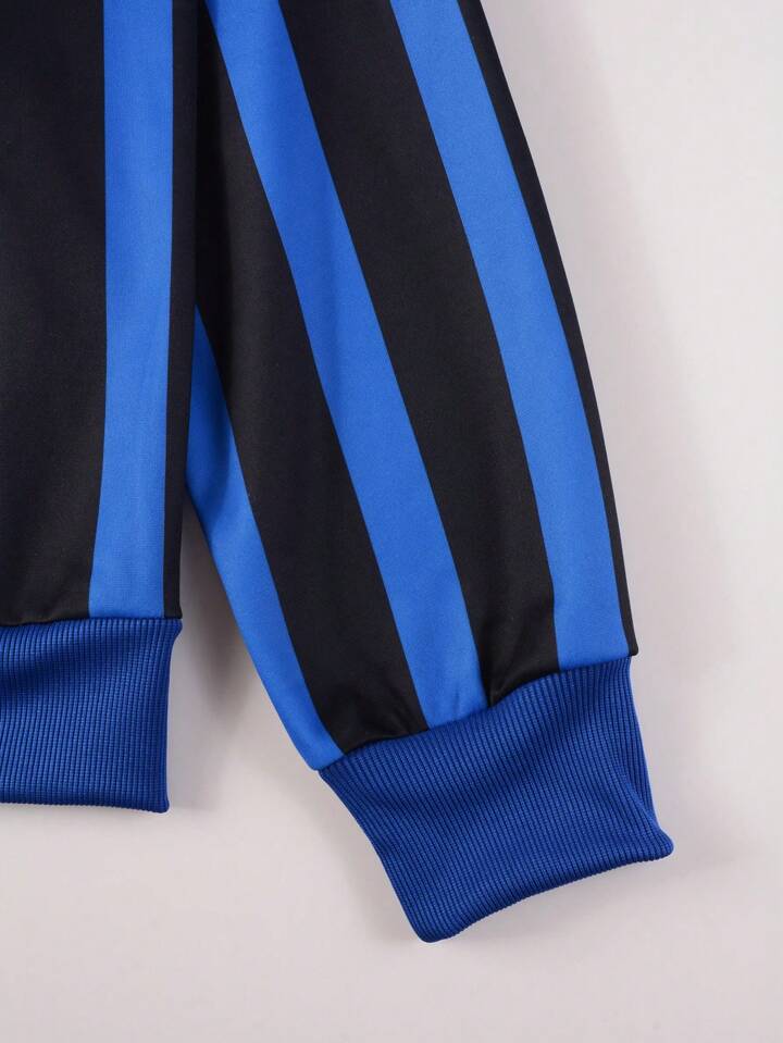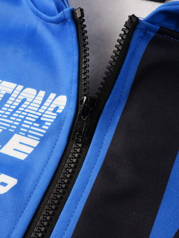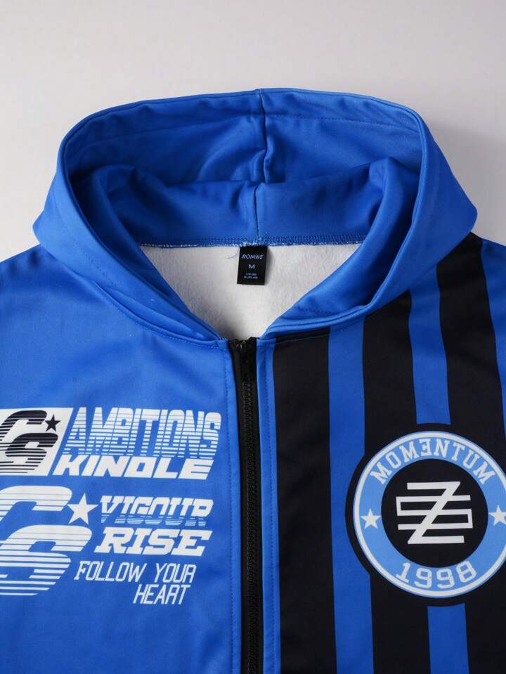Street Life البلوزة الرياضية القميص ذو الأكمام الطويلة مع سحاب وغطاء للرأس مزين بالخطوط والطباعة الحرفية