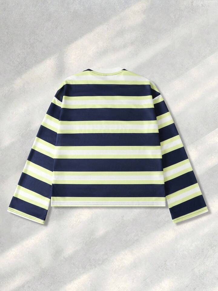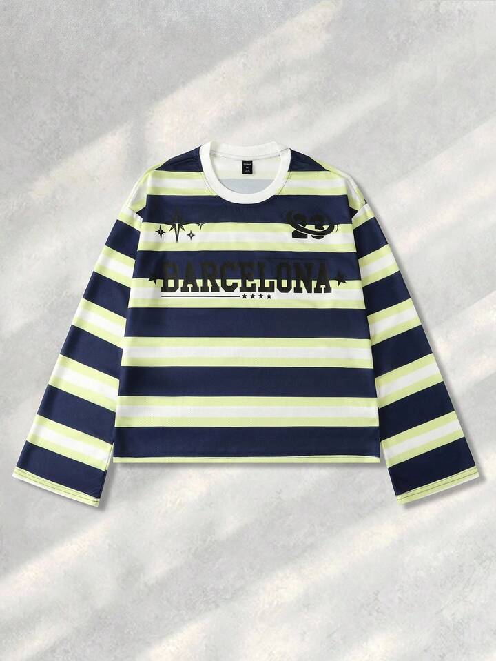 Street Life قميص تي شيرت طويل الأكمام مطبوع بخطوط، قصة فضفاضة قصيرة، خريف