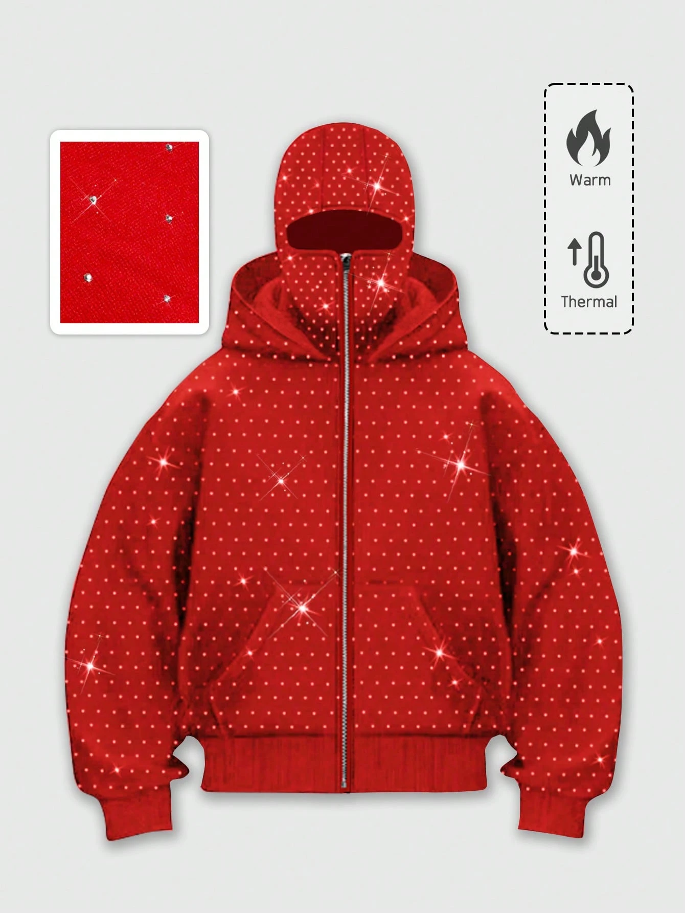 Street Life بلوزة رجالية مزينة بالراين ستون مع قبعة وجيوب، سحاب أنيق وعصري