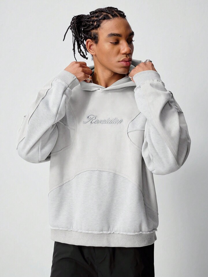 Street Life سترة رجالية كاجوال فضفاضة ذات خياطة بحرف الخريف مع قلنسوة، هودي رمادي