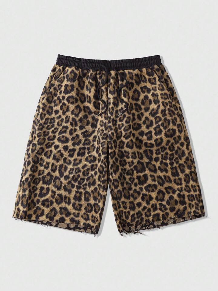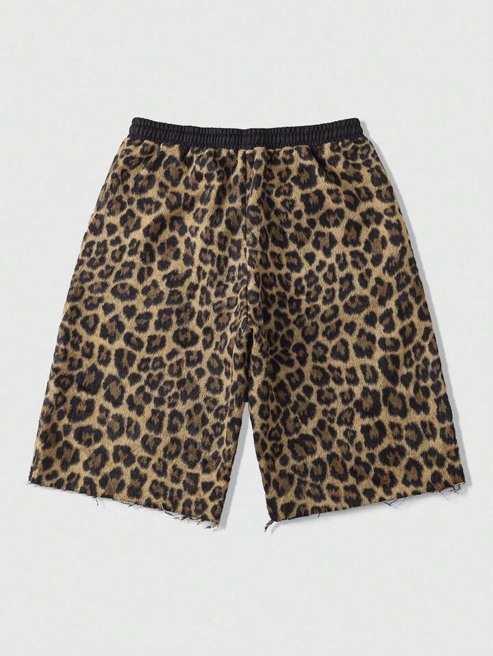 Street Life شورتات رجالية صيفية كاجوال بطبعة نمر جاكارد، طول الركبة