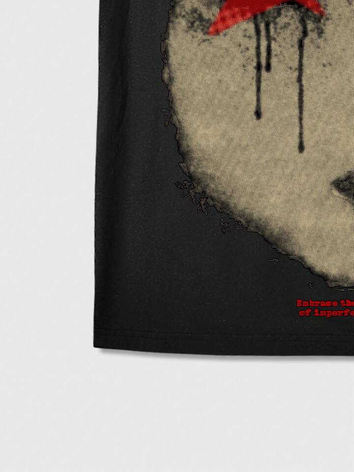 Street Life ملابس علوية سباغيتي مطبوع بوجه وشعار للرجال ، المدرسة