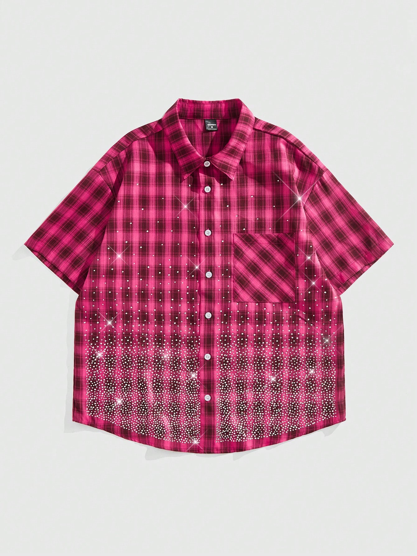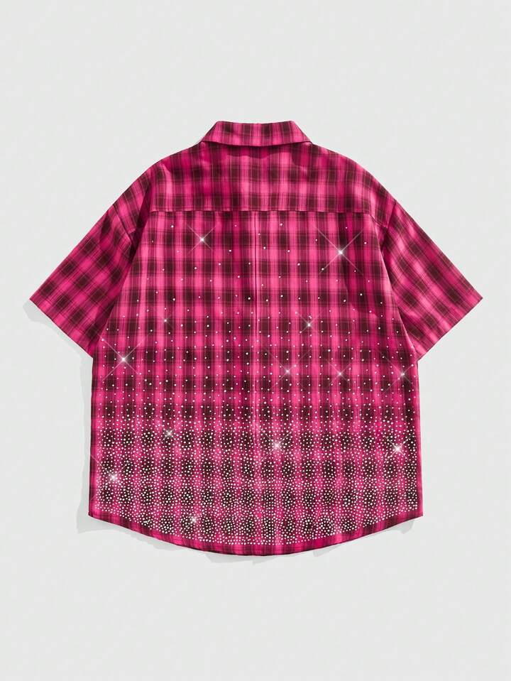 Street Life قميص رجالي أنيق بطباعة مربعات مزين بالراين ستون لفصل الصيف