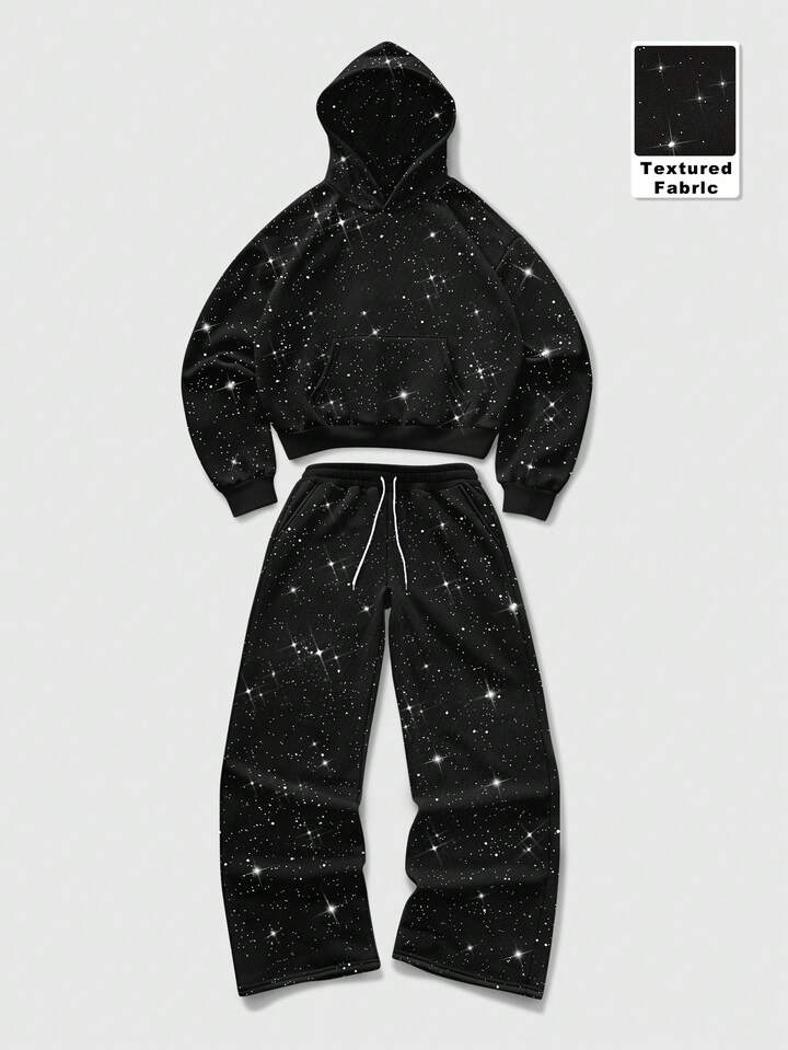 Street Life طقم هوديي جيب قماش نسيجي عادي وبنطلون رياضي واسع الساق بخصر رباط، ربيع/خريف للرجال