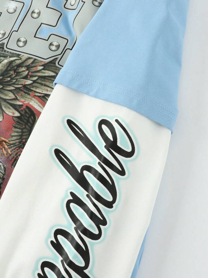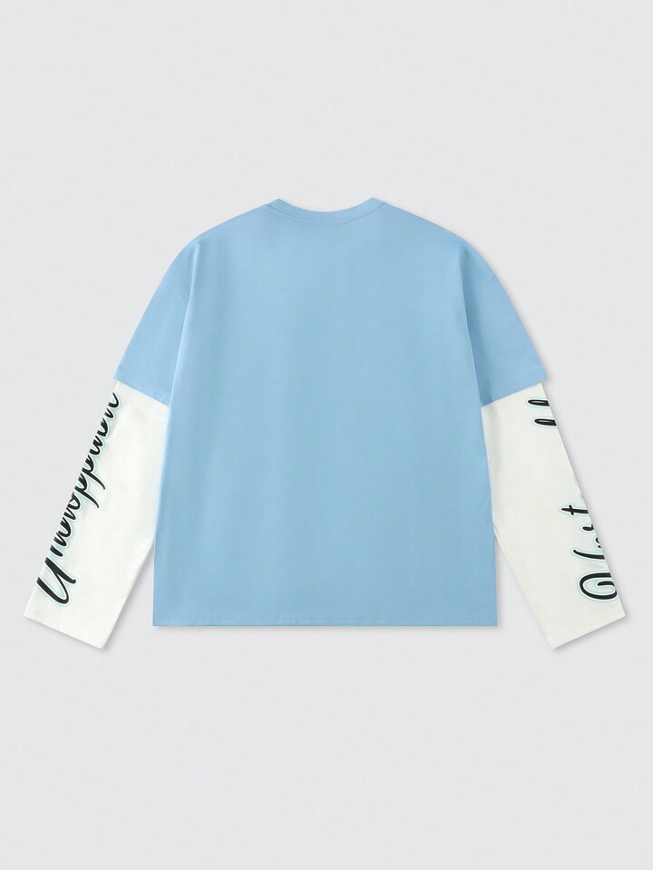 Street Life تي شيرت أكمام طويلة سميك 2 في 1 حياكة ملونة، ملابس الشارع