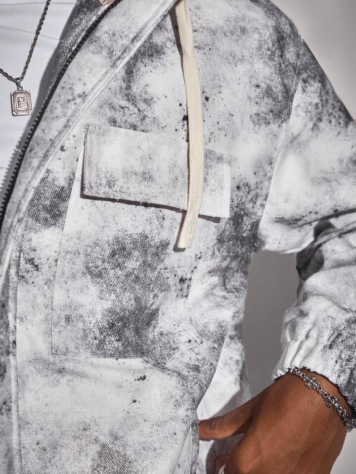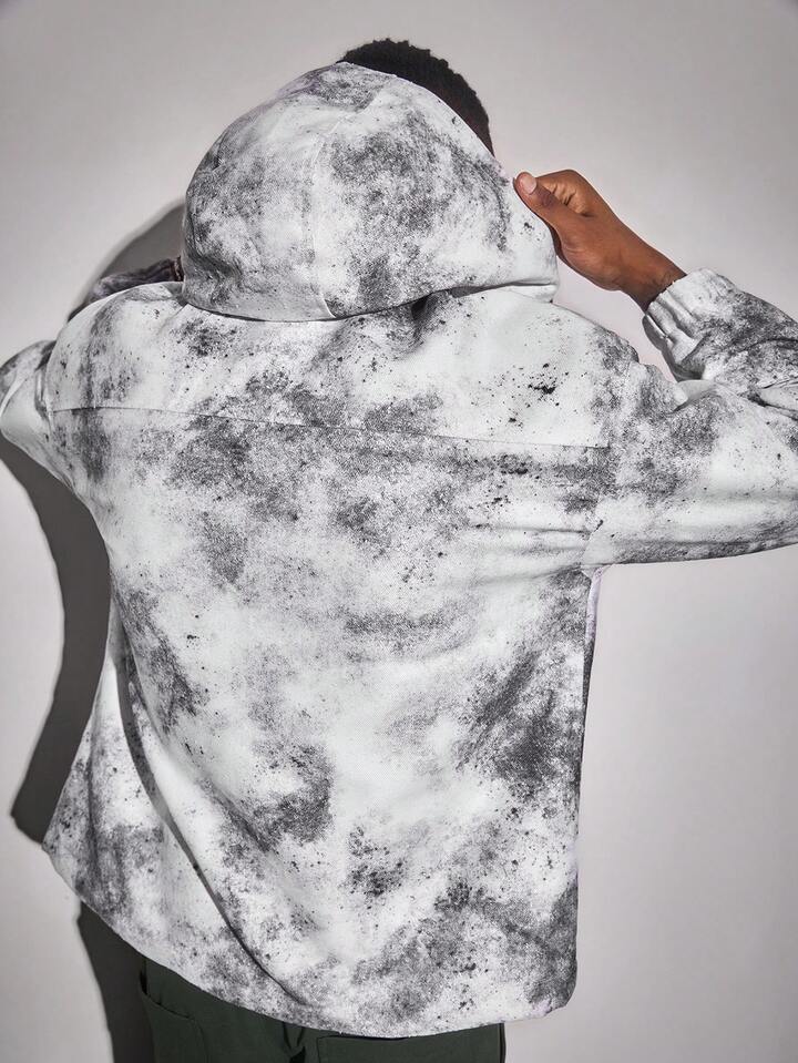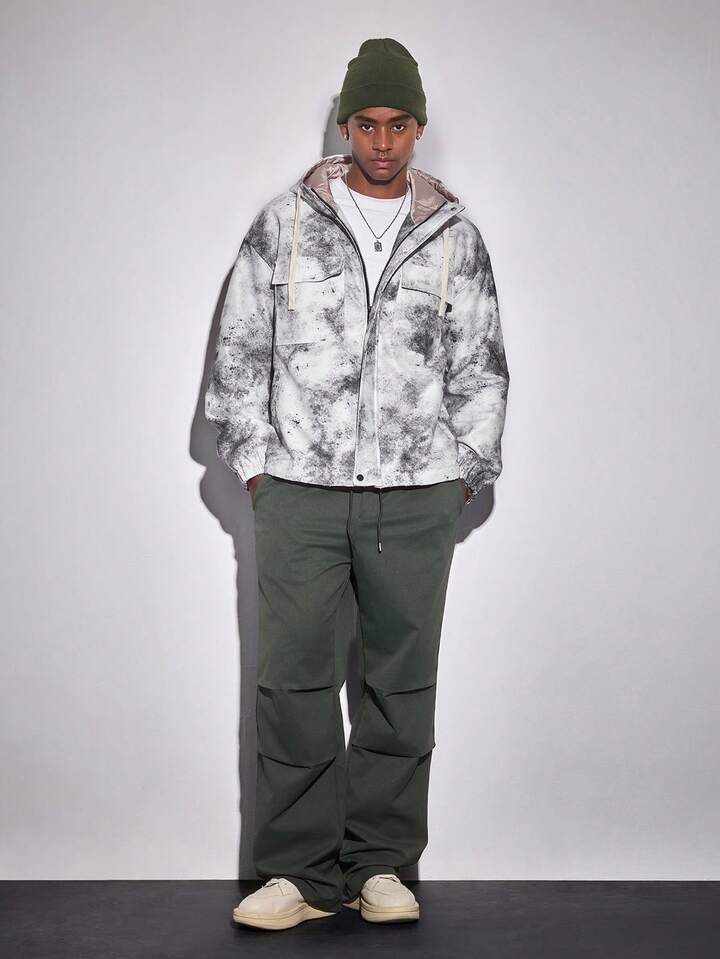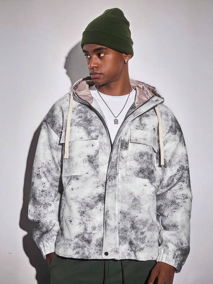 Street Life معطف رجالي مزود بغطاء رأس وسحاب أمامي مطبوع بطريقة الصبغ المربوط، أكمام طويلة، جيوب، شتوي