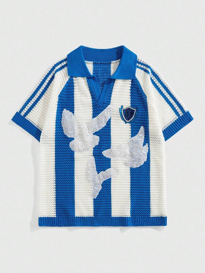 Street Life بلوزة كاجوال مطرزة بطيور ذات ياقة منحرفة مصنوعة من الصوف، ملابس الشارع