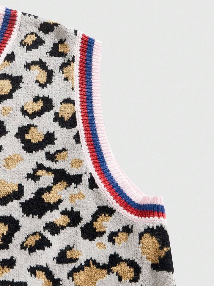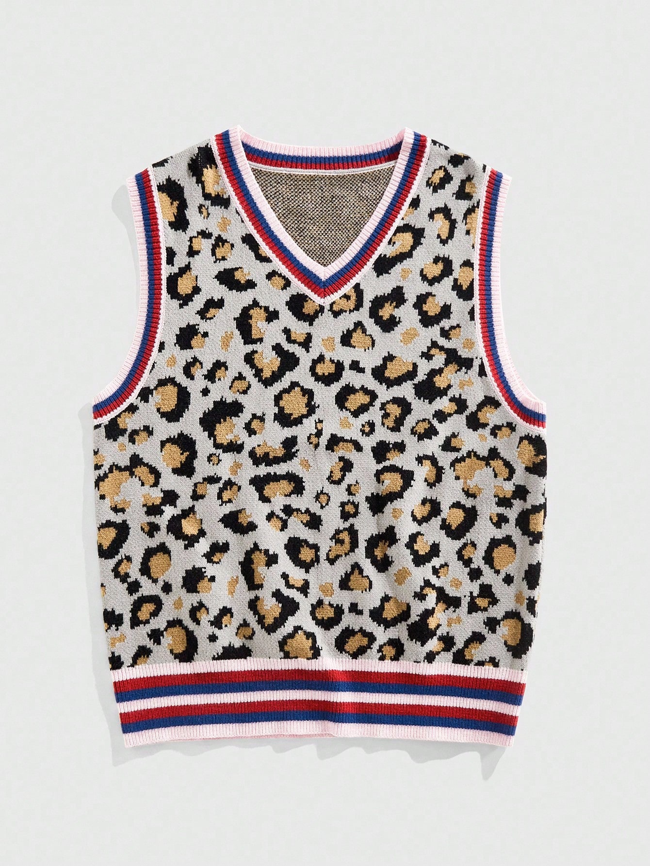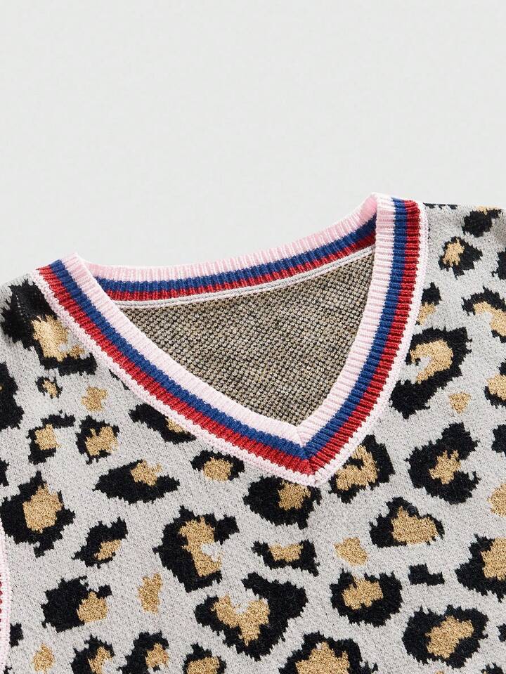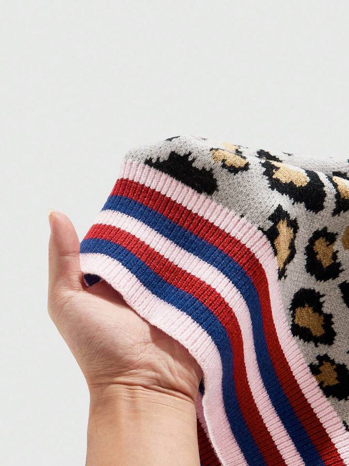 Street Life سترة محبوكة بطبعة نمر بياقة على شكل حرف V للرجال