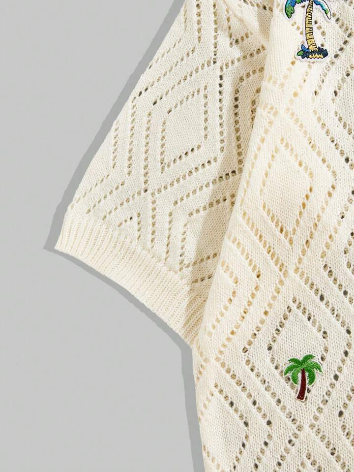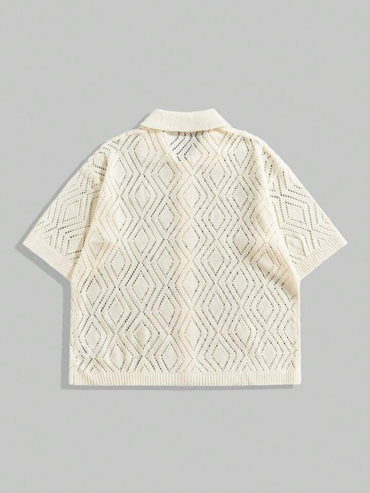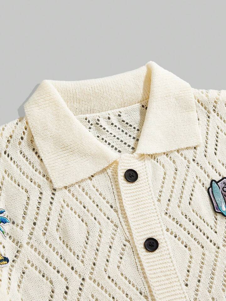 Street Life ملابس علوية كنزة مخصر مرن بأزرار أمامية مع رقعة مذاكية، أكمام قصيرة للرجال