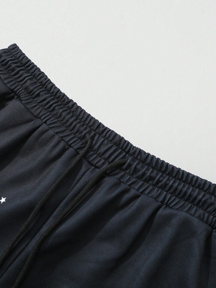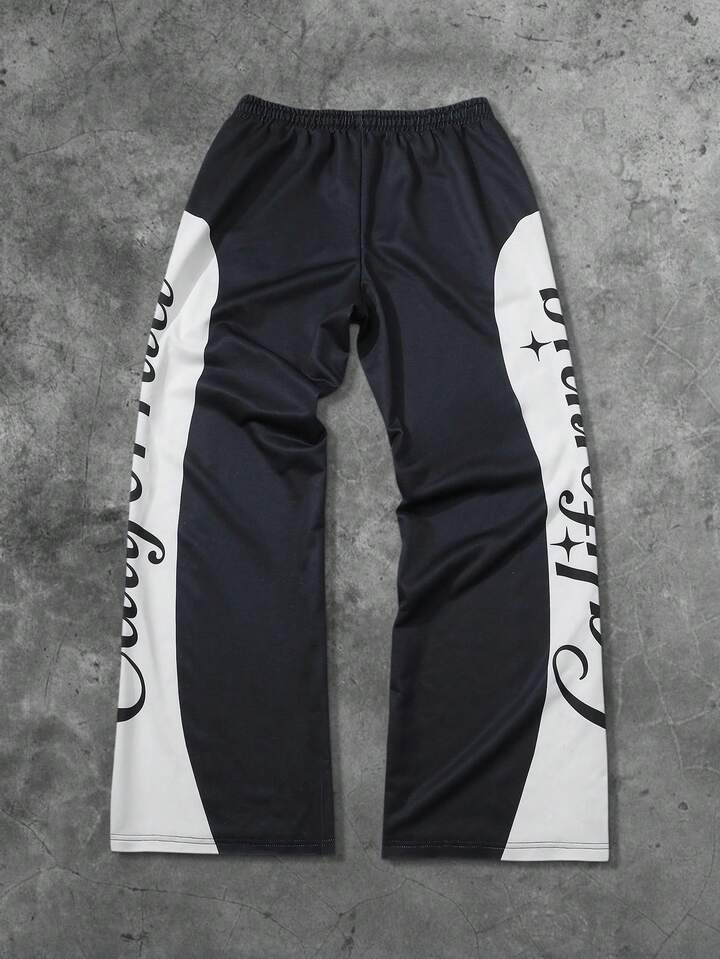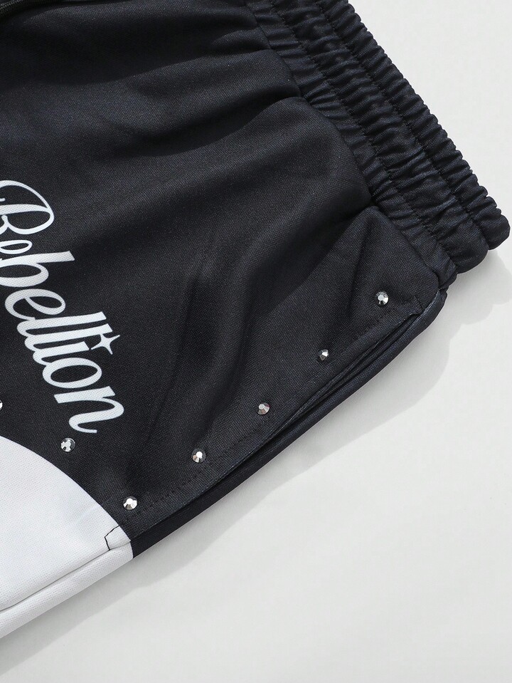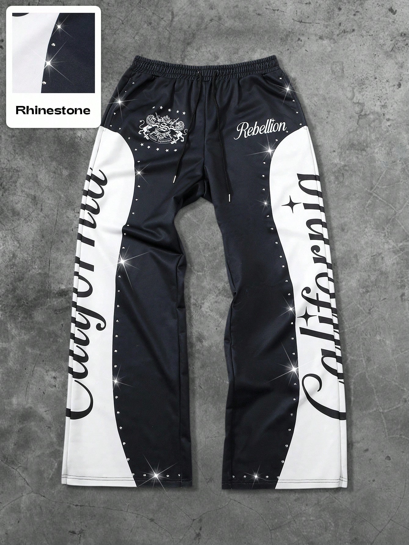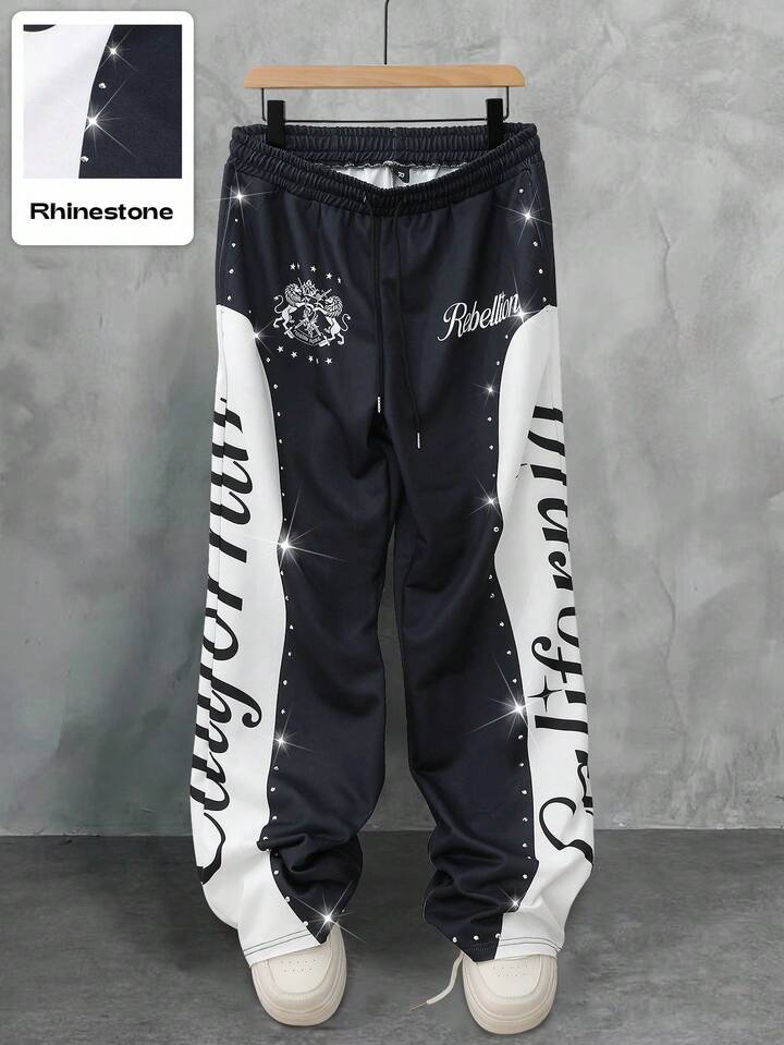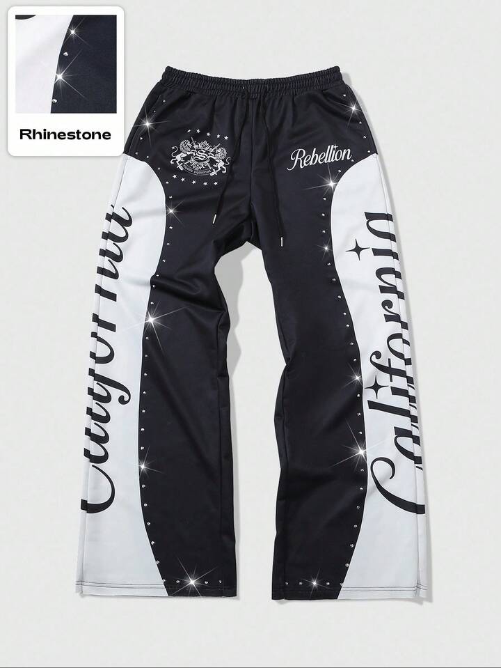 Street Life بنطلون رياضي للرجال بخصر مربوط بسحاب وطباعة حرف مرصع بالراين زيبرا