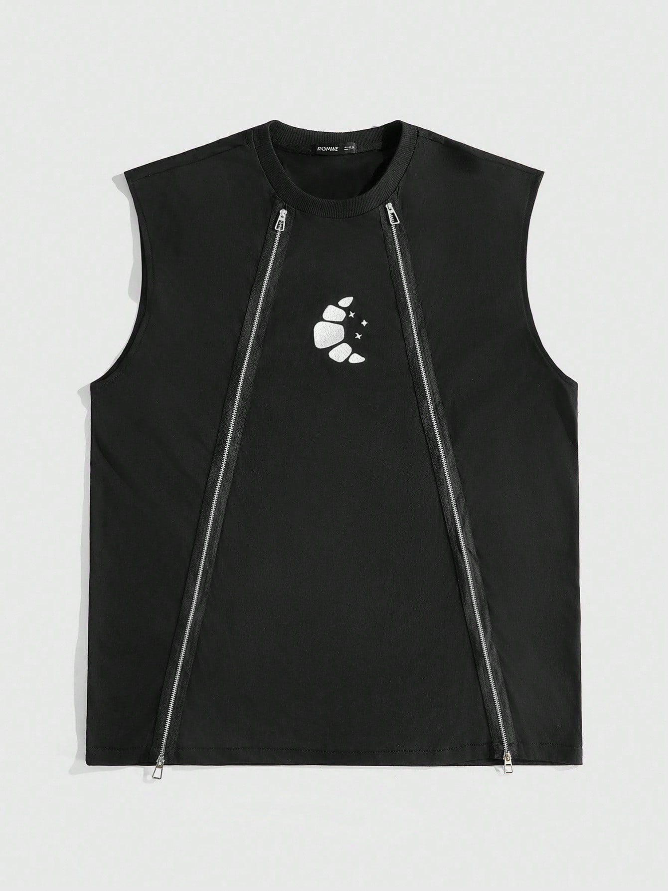 Street Life سترة رجالية بدون أكمام ذات سحاب بطباعة بسيطة باللون الأسود عصرية