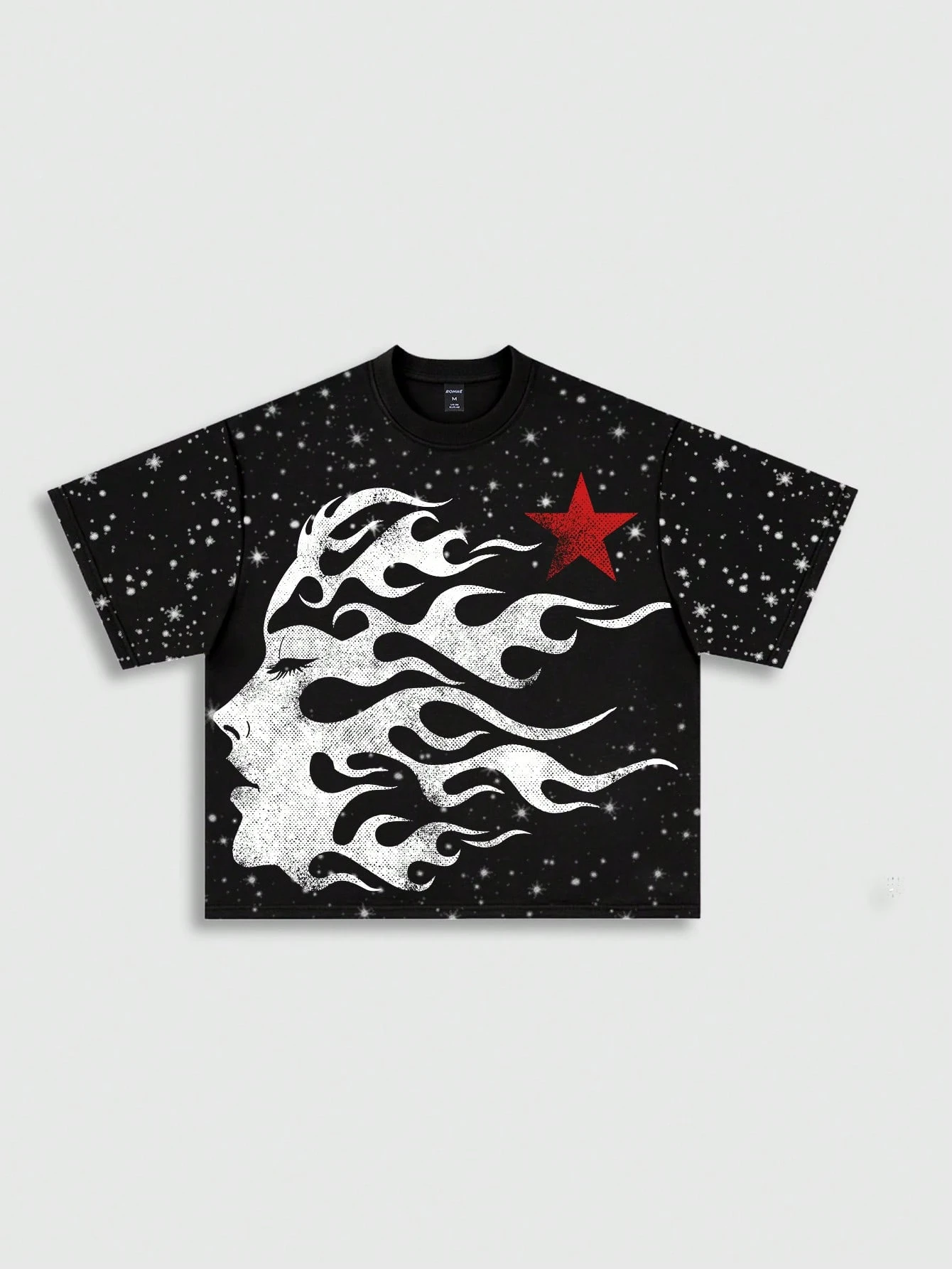 Street Life تي شيرت قطن جديد لربيع/صيف، طباعة رأس اللهب والنجمة الحمراء، قصير الأكمام